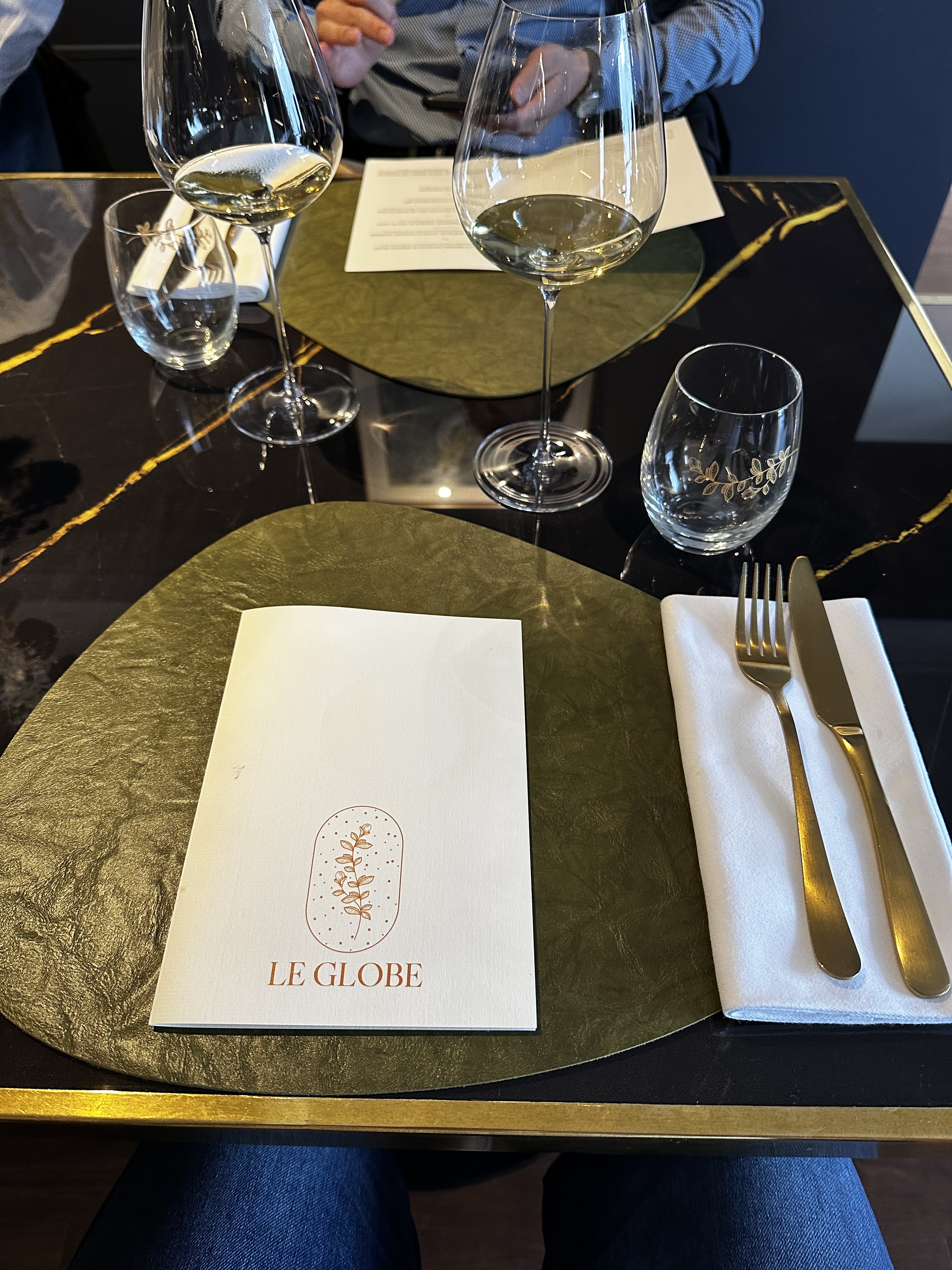 J'ai visité le globe pour la première fois l'année dernière et je reste maintenant trois mois en Bourgogne. Le globe est devenu un favori pour ma femme et moi. Tout d'abord la nourriture. Nous sommes tous les deux absolument étonnés que le chef n'ait pas appris une étoile Michelin. Le choix des ingrédients, la variété et la classe de présentation sont exceptionnellement dignes d'au moins une étoile ! Ma femme est végétarienne et c'est l'un des rares restaurants de la région à proposer naturellement un menu végétarien à la fois délicat et varié. Même si j'ai mangé le même menu pendant plusieurs semaines, de petites variations dans les ingrédients et les arômes ont fait de chaque repas un délice pour ma femme. Tout le personnel est exceptionnel, en particulier Mohammed qui comprend les vins bourguignons locaux et a donné des références exceptionnelles. Nous reviendrons et reviendrons et reviendrons. C'est sans aucun doute un lieu très remarquable dans la belle région de Mersault et ses environs. Bravo à toute l'équipe