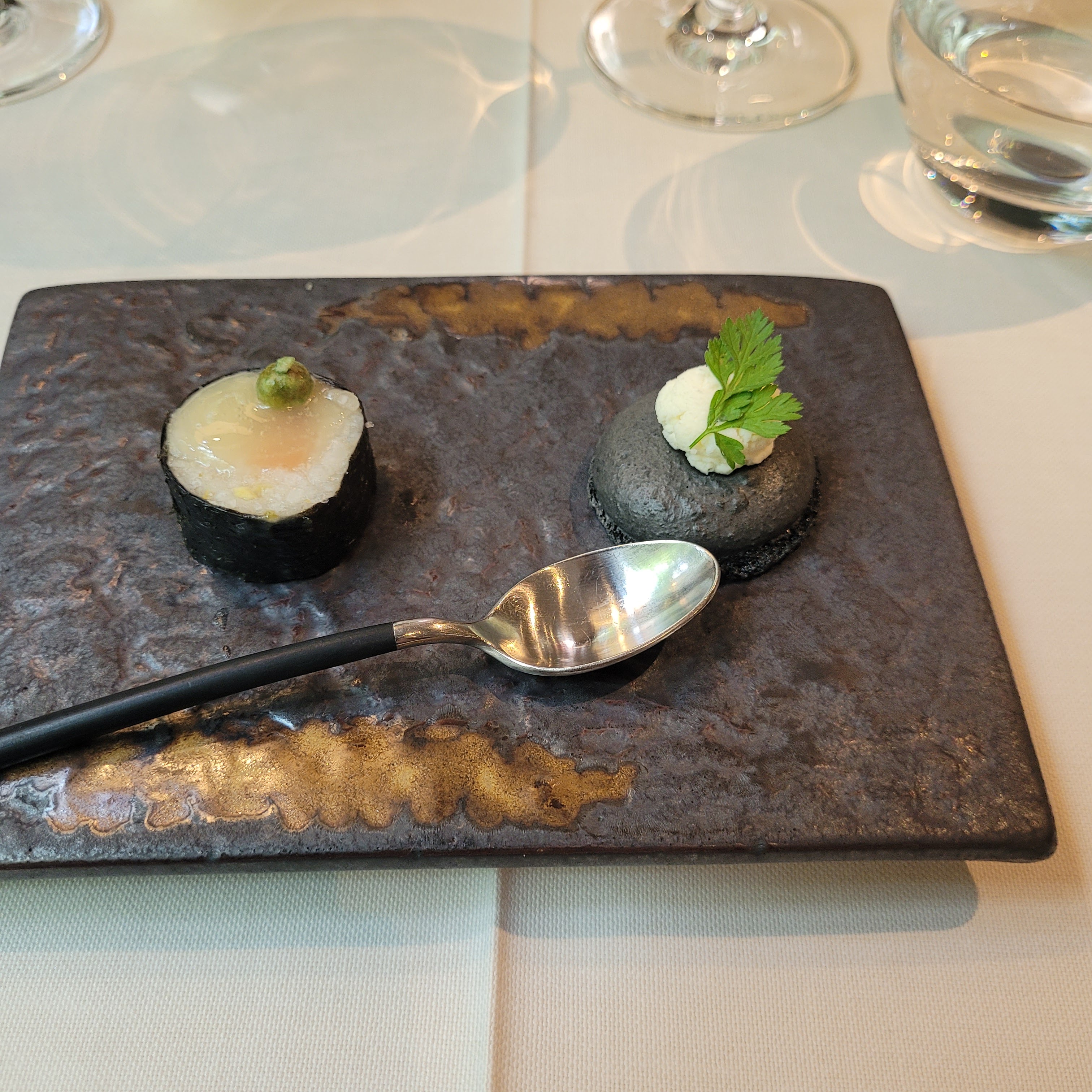 Excellente nourriture. Le service est très professionnel, peut-être un peu trop. C'est un service français classique qui n'est pas mon préféré. J'aime leur niveau de professionnalisme mais je m'attendais à une connexion plus personnelle. Quoi qu'il en soit, si vous souhaitez vivre une excellente expérience culinaire et apprécier le style guindé, c'est un endroit idéal pour vous.