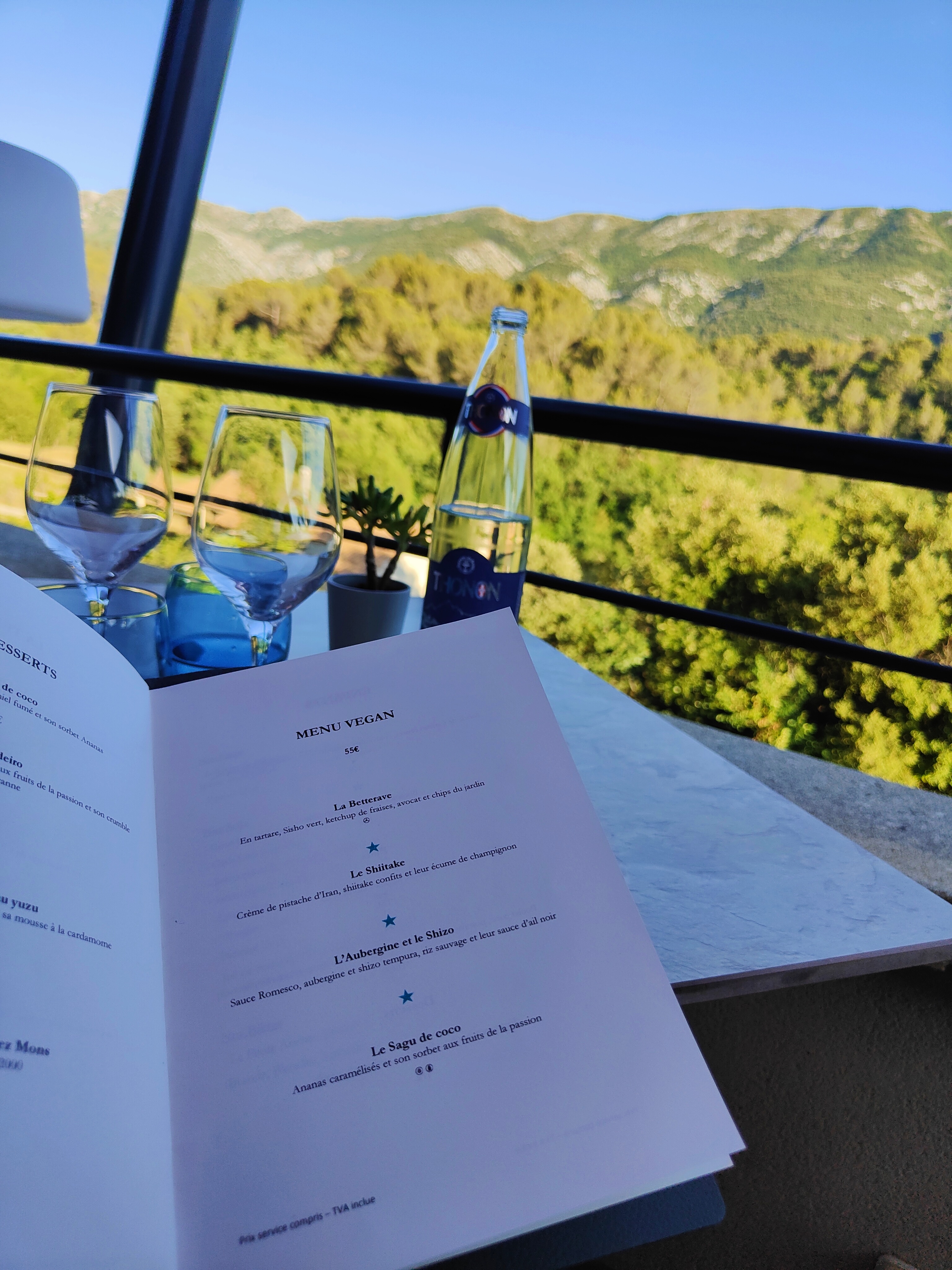 La vue est superbe, le menu découverte très sympathique, c'est bon et beau. Neanmoins, Il serait bien d'ajouter de la signalisation et de conseiller vos clients lors des échanges téléphoniques concernant l'accès car le gps mène à l'entrée piétonne du village et nous oblige à marcher sur 500m. Un peu d'eau avec le café en fin de repas serait apprécié. Cela éviterait de facturer une nouvelle bouteille d'eau à 7€ (alors que nous avons deja reglé la table). Pensez à vérifier si les clients ont laissé l'argent (de la bouteille d'eau) sur la table avant de les poursuivre dans la rue.