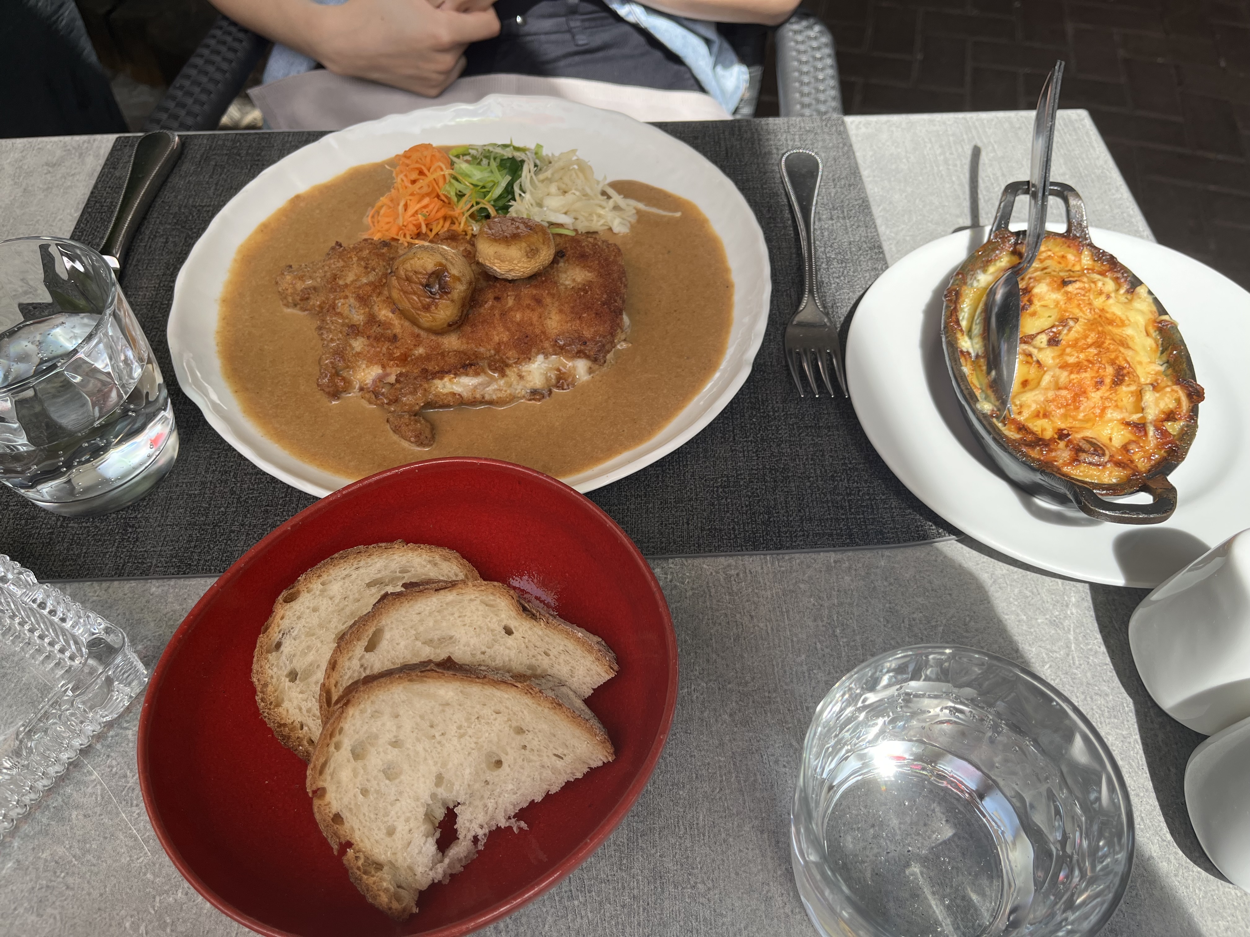 Pour le déjeuner - Très bonne nourriture - menu du jour super bon marché et toujours super savoureux et joliment préparé. - Serveuses gentilles et attentionnées Le repas du midi dans la cour était agréable malgré les températures élevées. Si vous aimez la bonne cuisine, c'est le bon endroit pour vous