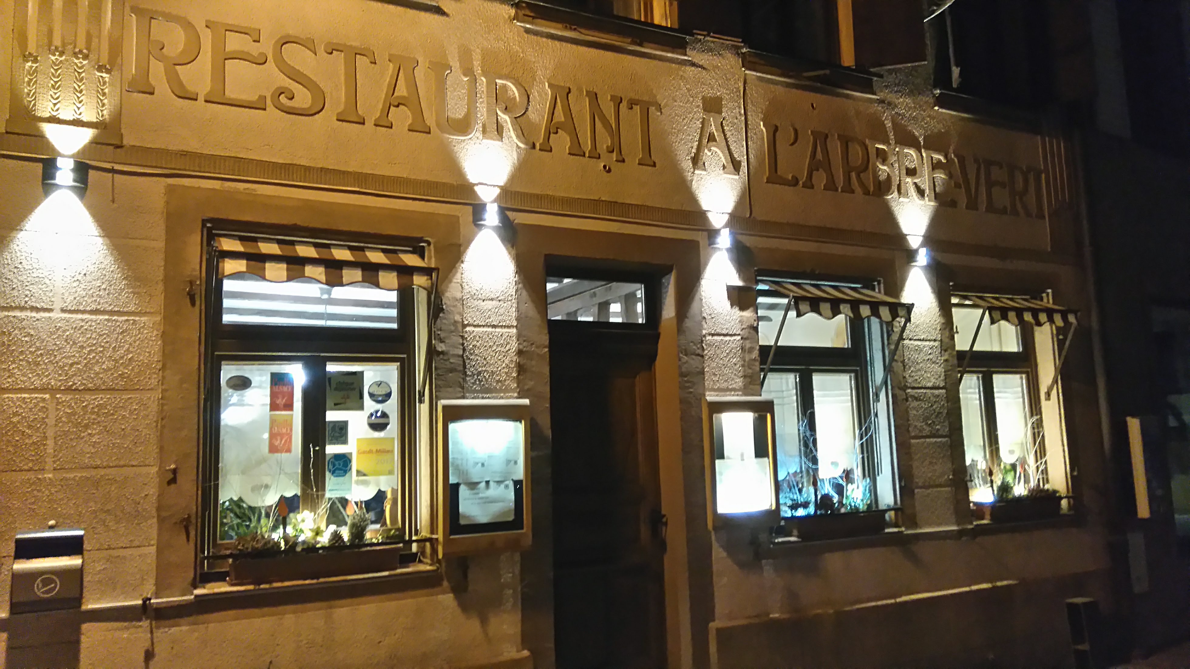 Nous avons passé un bon moment à L’arbre vert. Personnellement j’ai pris le cordon bleu au Munster accompagné de spatzles et de quelques légumes, c’était un régal ! Le munster avait du goût ! (ce n’est pas le cas partout malheureusement) et les carottes qui l’accompagnait étaient délicieuses également. La femme qui nous a servi était très sympathique ! C’est un endroit que nous vous recommandons, très bien situé dans la jolie ville de Dambach la ville , que nous ne connaissions pas et que l’on a pris plaisir à découvrir ce soir là.