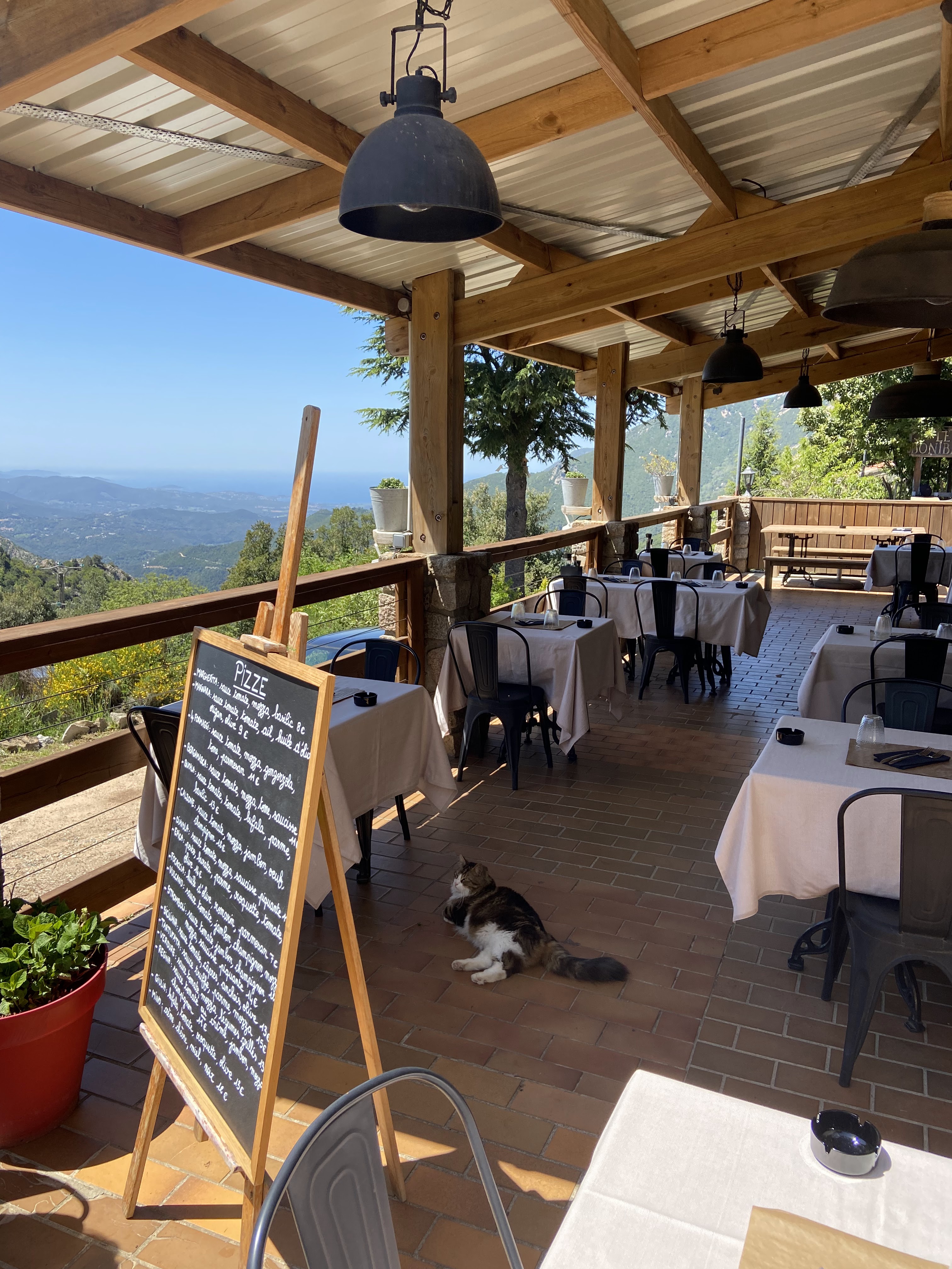Apres qq km de montée qui peut donner le tourni, un cadre totalement dépaysant par rapport à la côte. Très belles vues... Sinon la cuisine est bonne, sans pretention, et le service très aimable. Pensez à prendre un pull !, le frais tombe vite en terrasse...