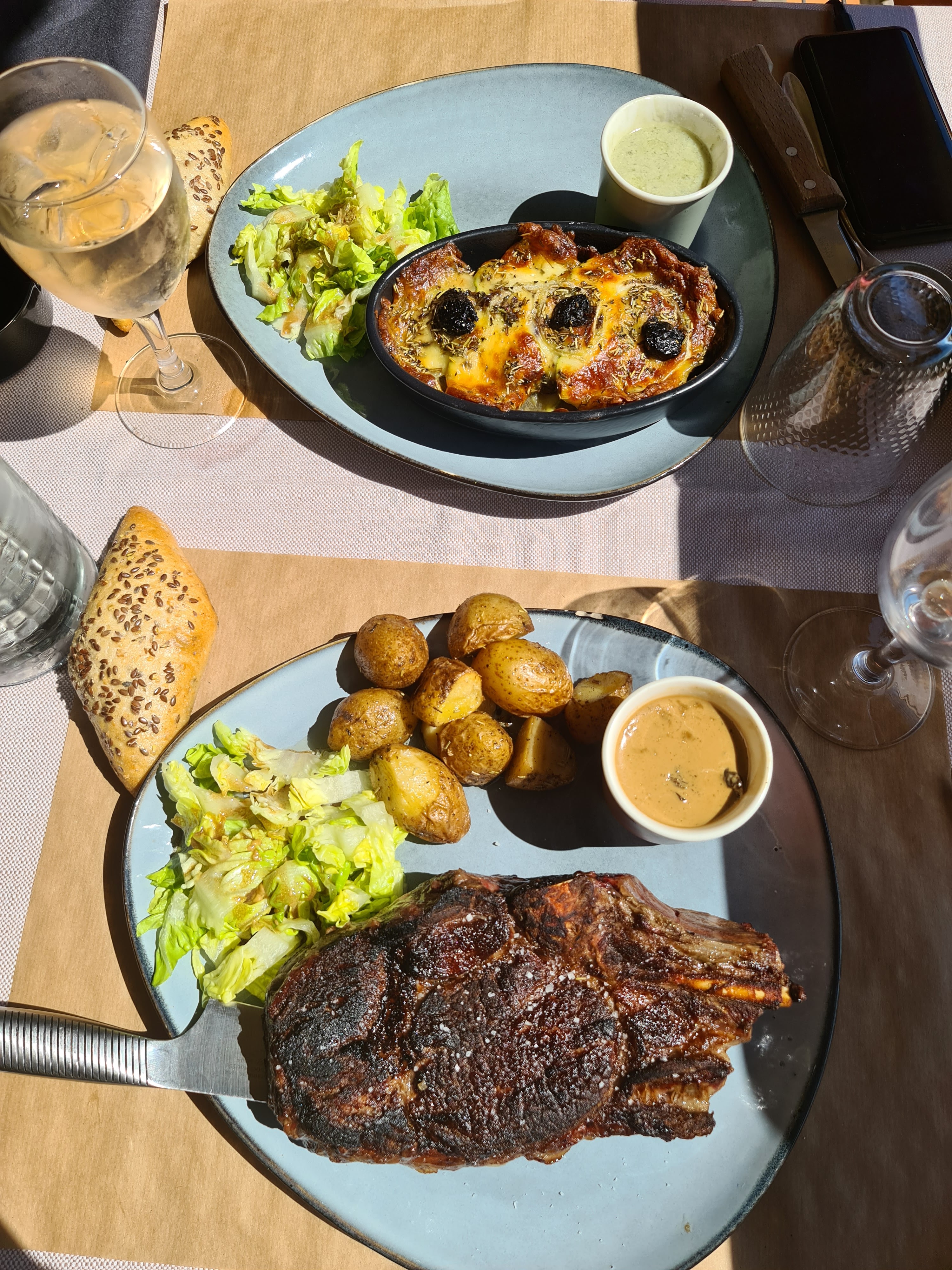 Lieux magnifique- terrasse superbe - mais il faut qu il fasse un peu chaud tout de même car restaurant en haut d un col 🤩 Intérieur cosy et vraiment très chouette - on s y sent bien 🌞 Plats excellents que ce soit l entrée(sucrine parmesan) , le plat (viande aubrasero),ou le dessert (crumble) Nous y retournerons c est certain 👍