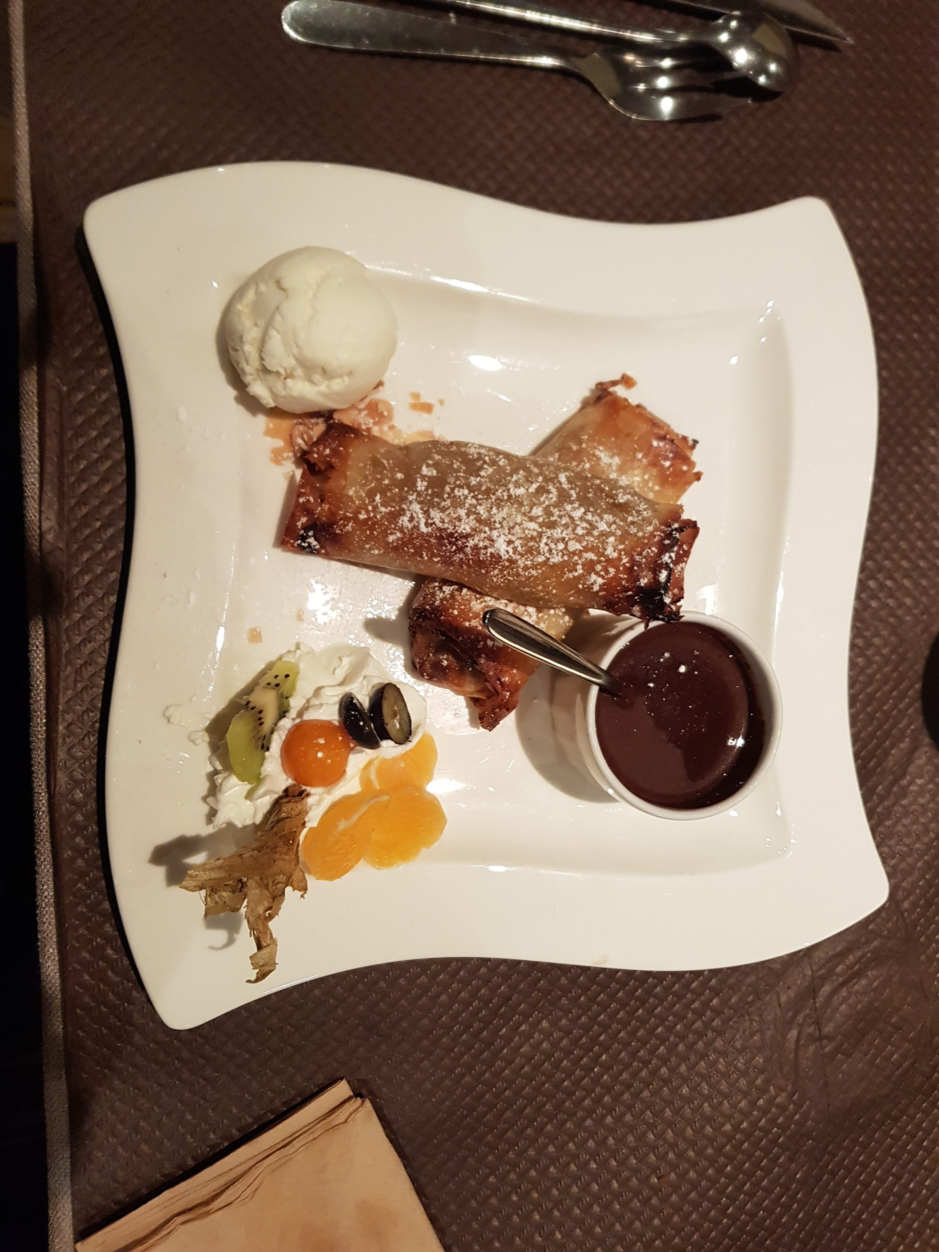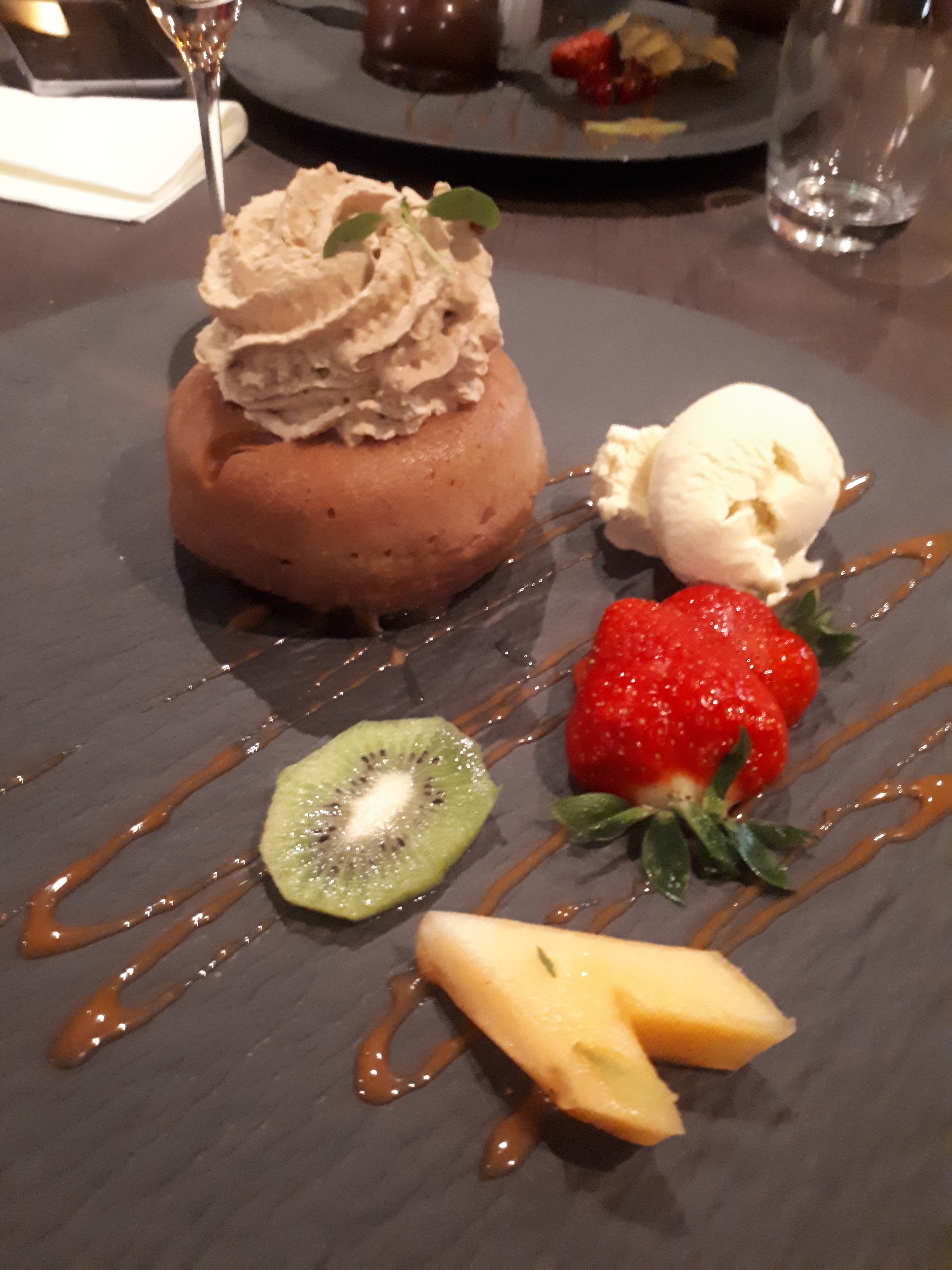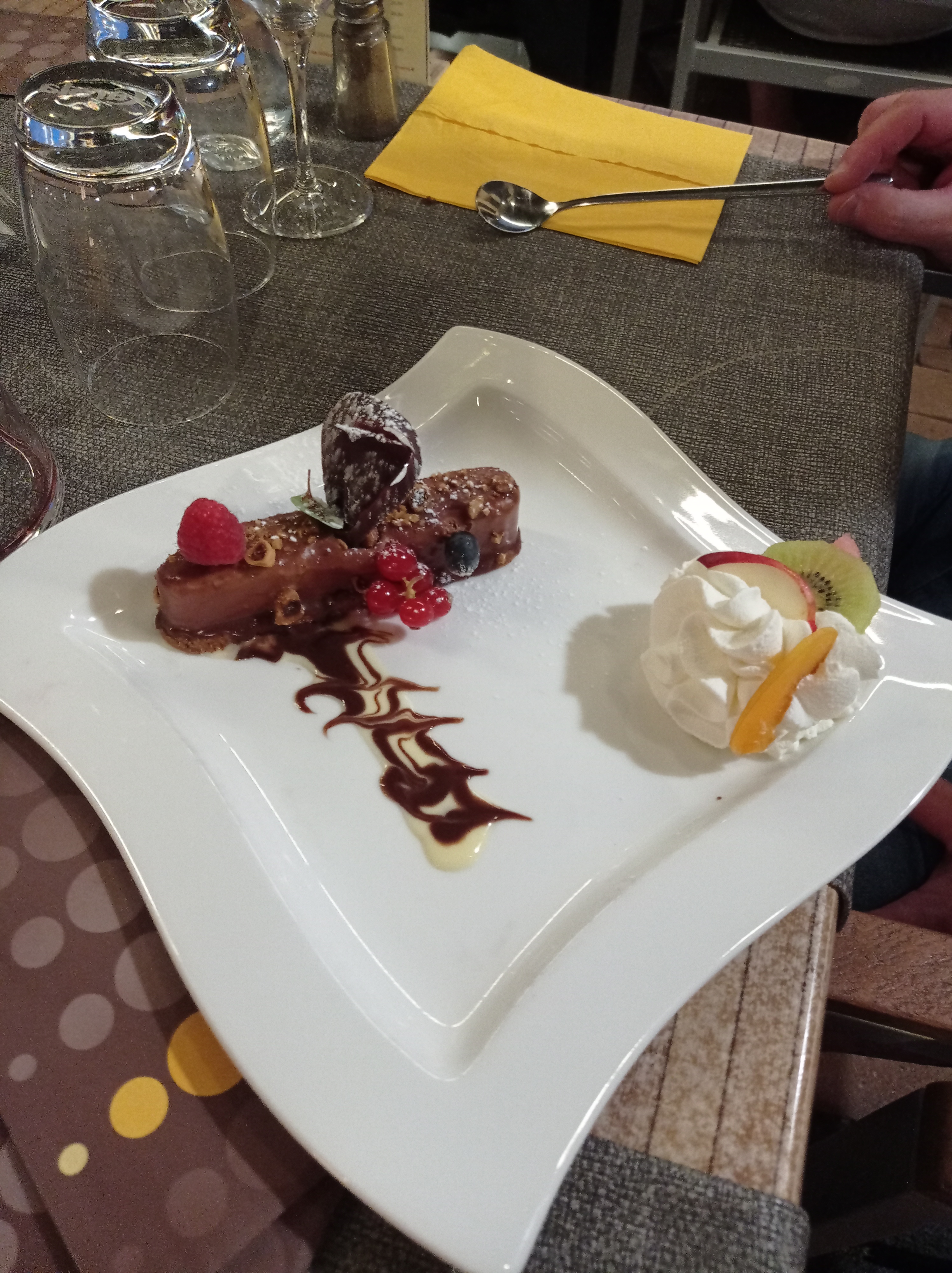 Plat très bon, raffiné et copieux. Cependant au niveau des desserts il y a des choses à revoir ! Surtout en ce qui concerne la dame blanche 8€ pour 3 boules de glace vanille et un petit pot avec du colis de chocolat .. un peu l'impression de ce faire avoir ..