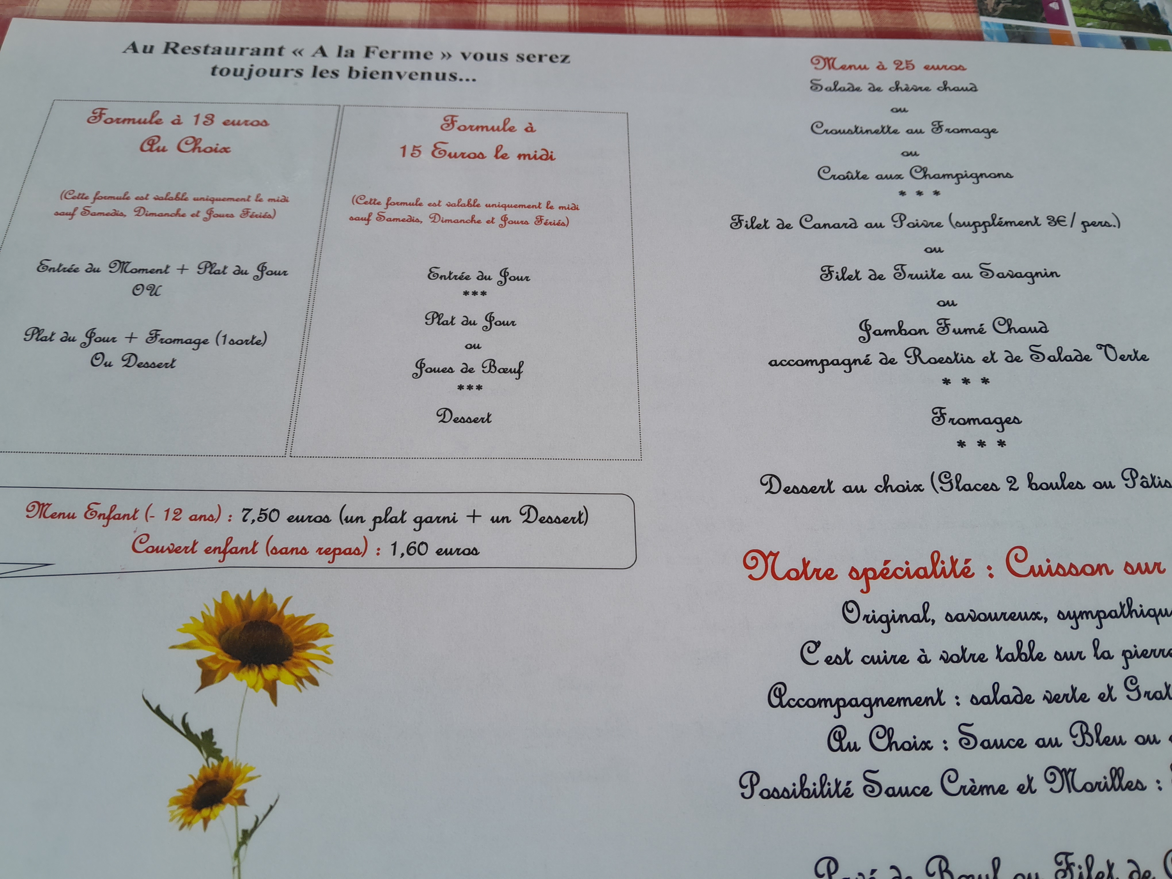 Nous avons passé un très bon moment au restaurant À la ferme ! Les repas étaient délicieux (saucisse de Morteau et tagliatelles franc comtoise) et nous avons apprécié le cadre champêtre du restaurant.