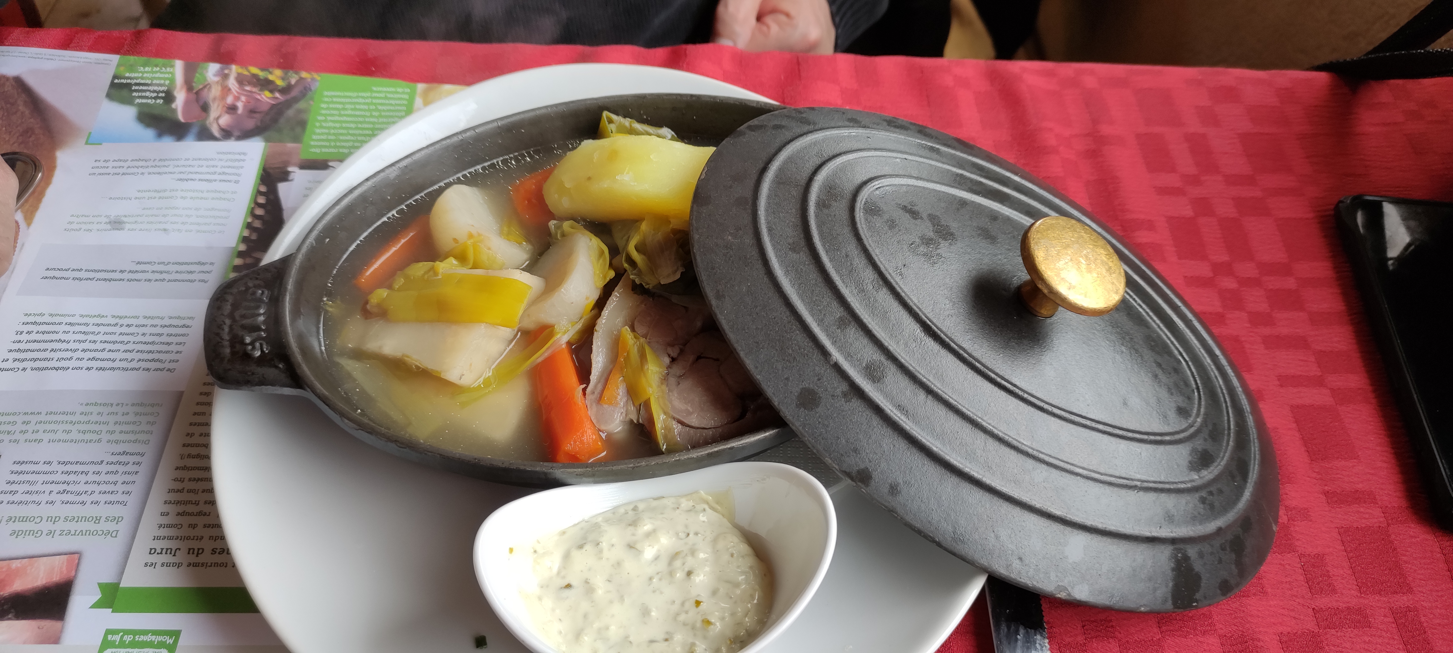 Très déçue de ce restaurant. Points positifs : - serveuses et responsable agréables - des toilettes très propres - reconnu plusieurs années par le routard, le futé et Michelin en 2018 mais nous ne comprenons pas par rapport à ce que nous avons mangé... - viande d’origine française 👍🏻 Points négatifs : - assiette pas généreuse (en tout cas pas les nôtres) : est ce parce que nous venions avec le passeport gourmand ? - fromage servi trop froid et comté trop jeune (6 mois je suppose) - attente très longue entre chaque plat - rösti industriel (?) au goût de friture - salade pas belle Nous sommes venus avec le passeport gourmand et nous avons pris le menu à 21€ qui, sur la carte, semblait alléchant. Les champignons de la croûte aux champignons ne semblaient pas frais, sauce un peu trop liquide et moi qui me faisait un plaisir de manger une croûte, elle n’était pas fameuse. Concernant le plat, jambon fumé chaud-rosti-salade, le jambon était un peu gras (on va dire qu’il s’agit bien d’un porc franc comtois réputé gras pour nos saucisses régionales) mais tendre à la fois avec une très bonne sauce qui accompagnait, UN rösti qui semblait plus industriel que frais avec un goût de friture bien prononcée, une salade cuite par la sauce et noircie. Quand on fromage, nous savons que la majorité des fromages doivent être servi à l’avance : malheureusement comté, morbier et metsi était froid (sachant que sur les sets de table étaient écrit que « le comté doit être servi entre 15 et 18 degrés »). Étant au pays du comté, celui ci était trop jeune pour nous faire savourer toutes ses notes. Pour les desserts, la tarte aux noix de pécan était agréable.