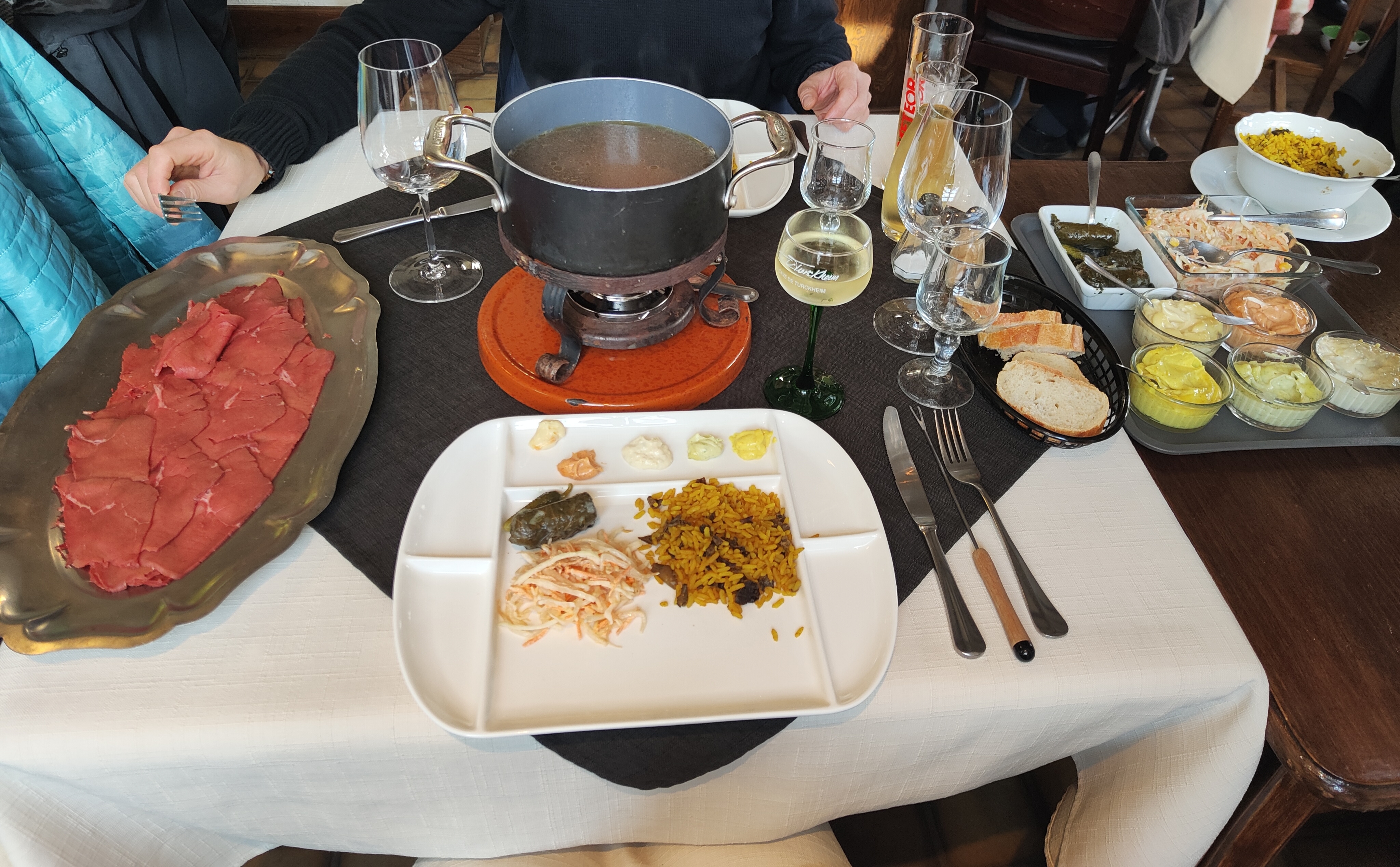Un restaurant alsacien tenu par une dame portugaise très sympa proposant une fondue chinoise... Étonnant mais très bon, très agréable, et copieux.