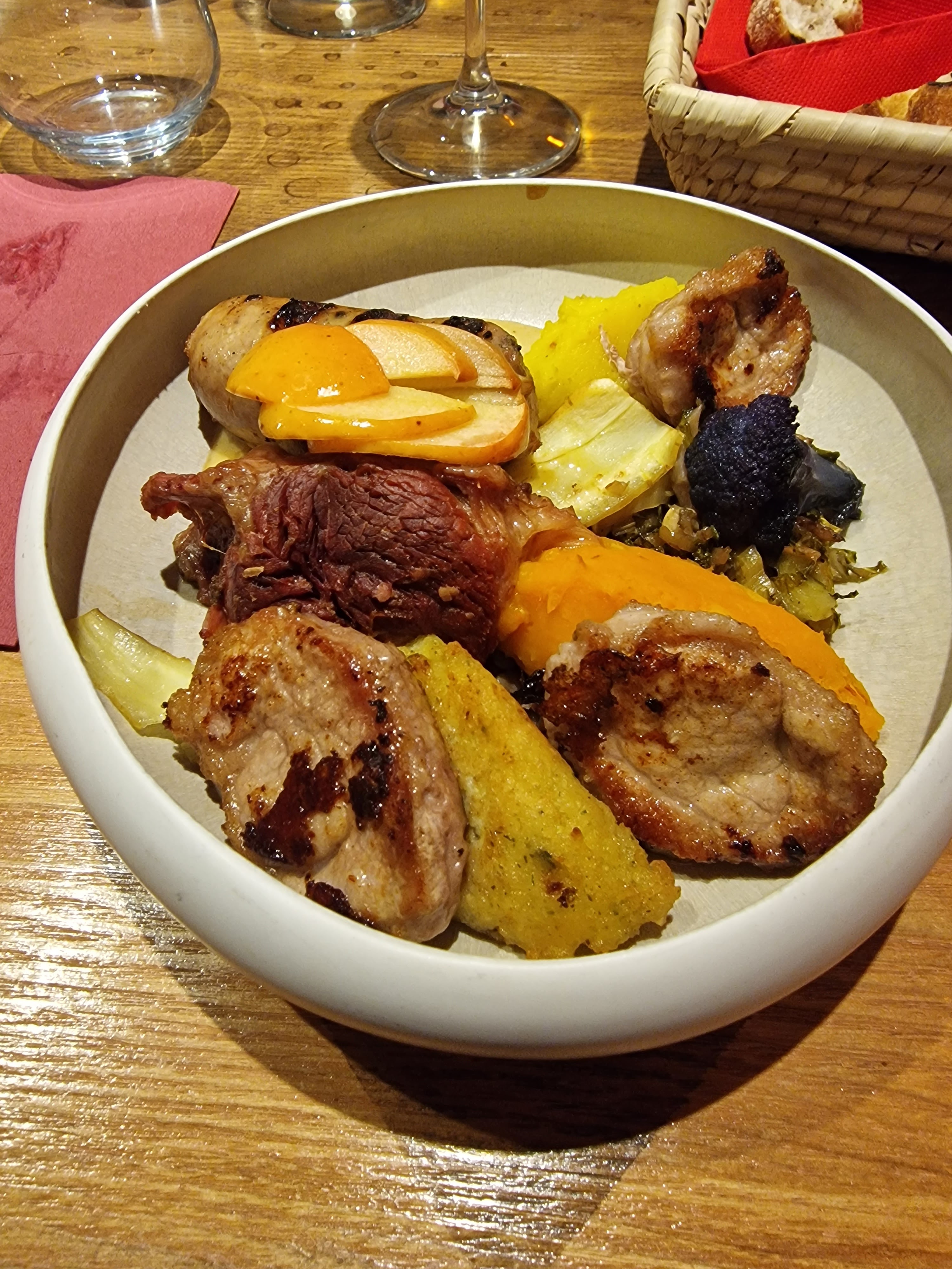Franchement décevant, presque malhonnête sur les plats Le personnel était accueillant mais la serveuse paraissait manquer de formation : ne connaissait pas la carte, ne savait pas nous répondre sur les ingrédients des plats, du liège est arrivé dans le vin à l’ouverture de la bouteille cela arrive parfois mais elle n’a pas été remplacée. La viande et le poisson étaient trop cuits, l’assaisonnement de la viande était très épicé, c’est un choix mais nous n’en avons pas été informés, certains plats bien trop salés ou sucrés. Les salaisons sont riches en goûts mais nous ne savions pas ce que nous mangions, et la planche reçue ne correspond pas à l’image du site internet. La viande du burger, censée être maturée ne l’était pas. Alors qu’un tiers des plats n’ont pas été mangés du tout, le cuisinier a fait preuve de beaucoup de mauvaise foi.