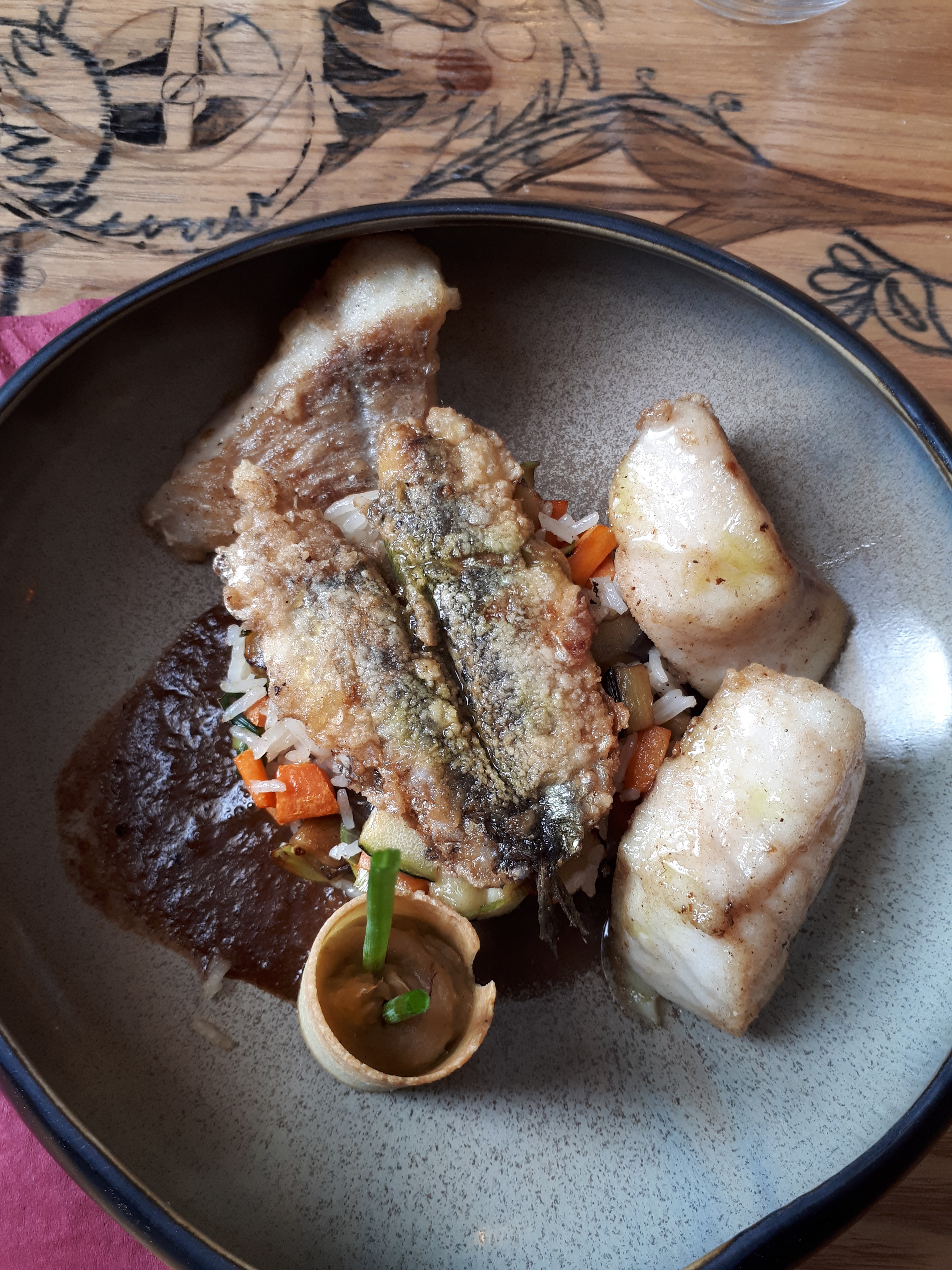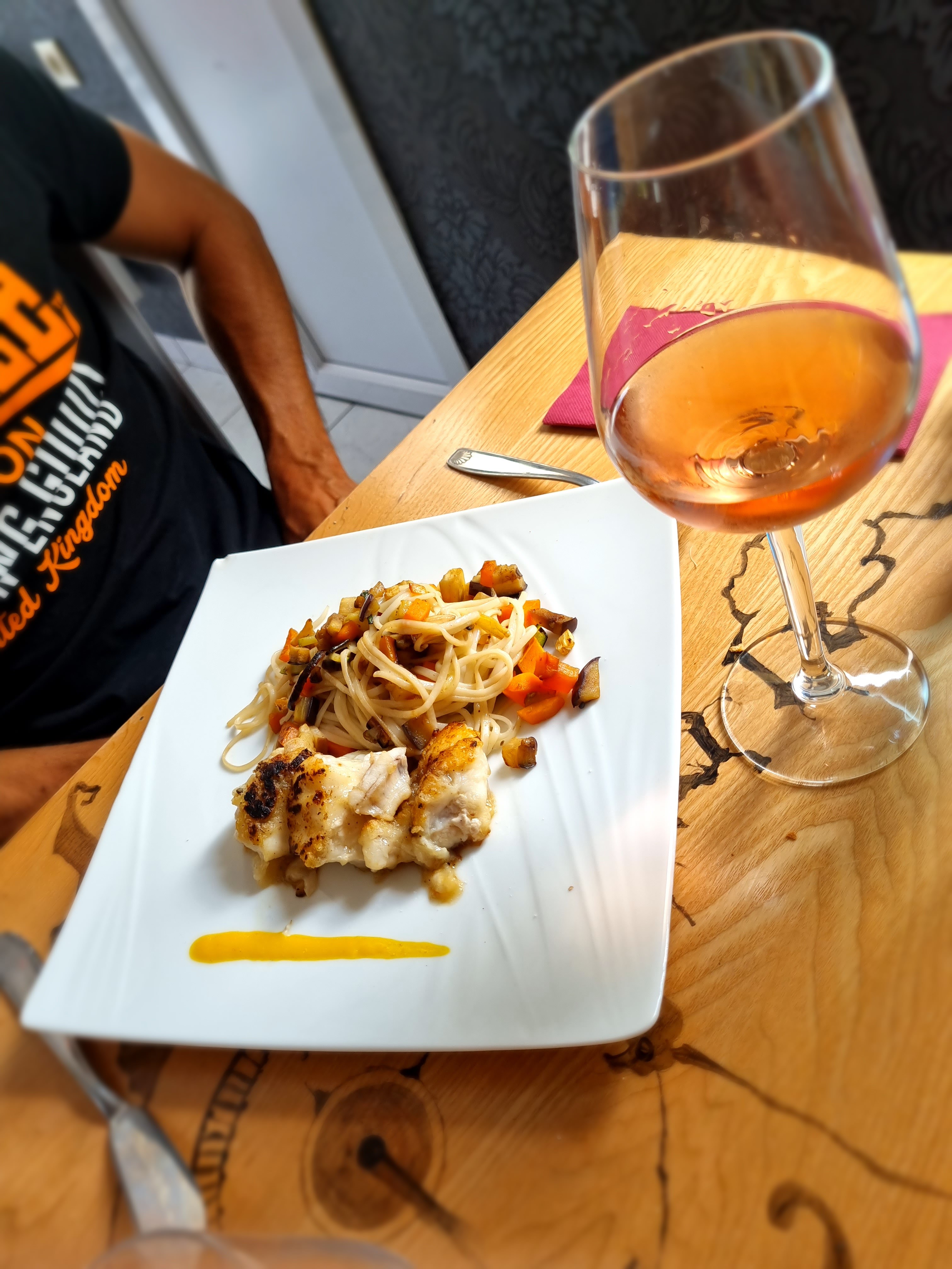 Excellent .entrée magret canard et petite salade composée très bien assaisonnée.cabillaud riz et ses petits légumes croquants super bon. Je recommande ce petit restaurant.