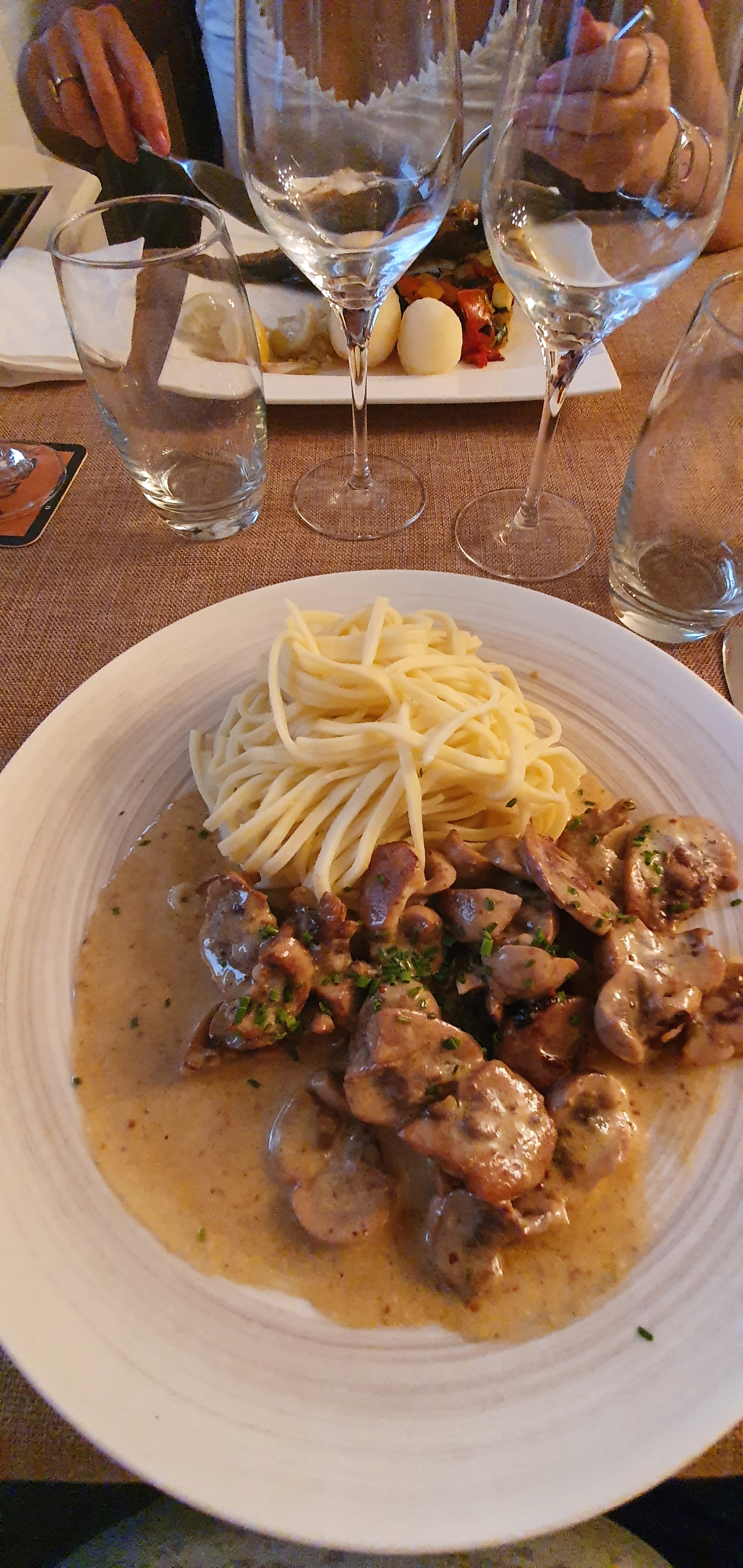Pas convaincu par l'escalope à la crème un peu fade et maigrichonne, accompagnée de ses frites sans attrait. Dommage. Pour 20 € j'aurai espère manger un peu mieux que ce que je fais à la maison en 10 minutes. 🙁