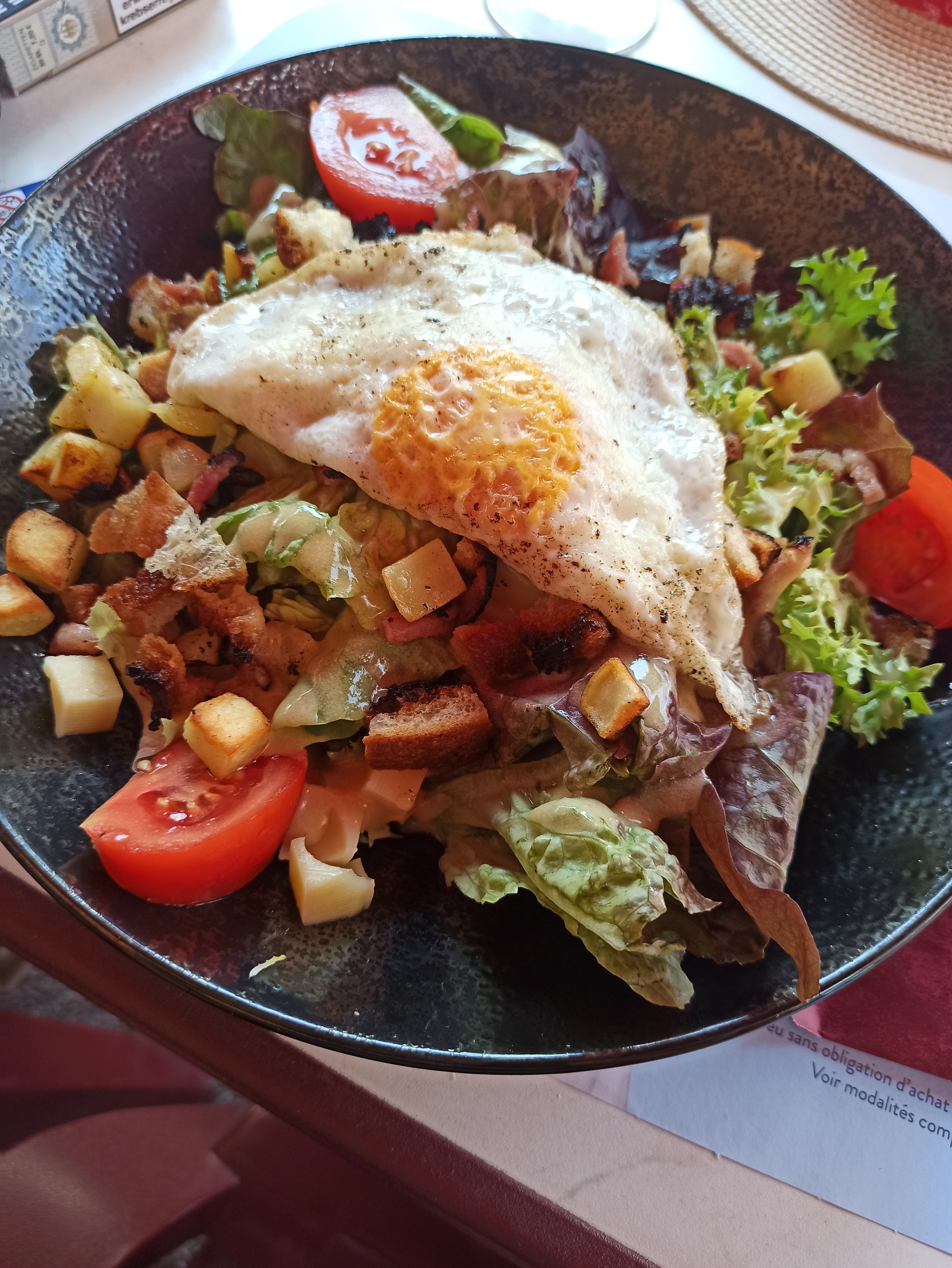 Nous avons attendu 1h pour une salade vide frigo associant rosbeef et saumon vinaigrette à 15,50 intitulée salade de Strasbourg. A éviter je pense qu'il vaut mieux aller au resto à côté