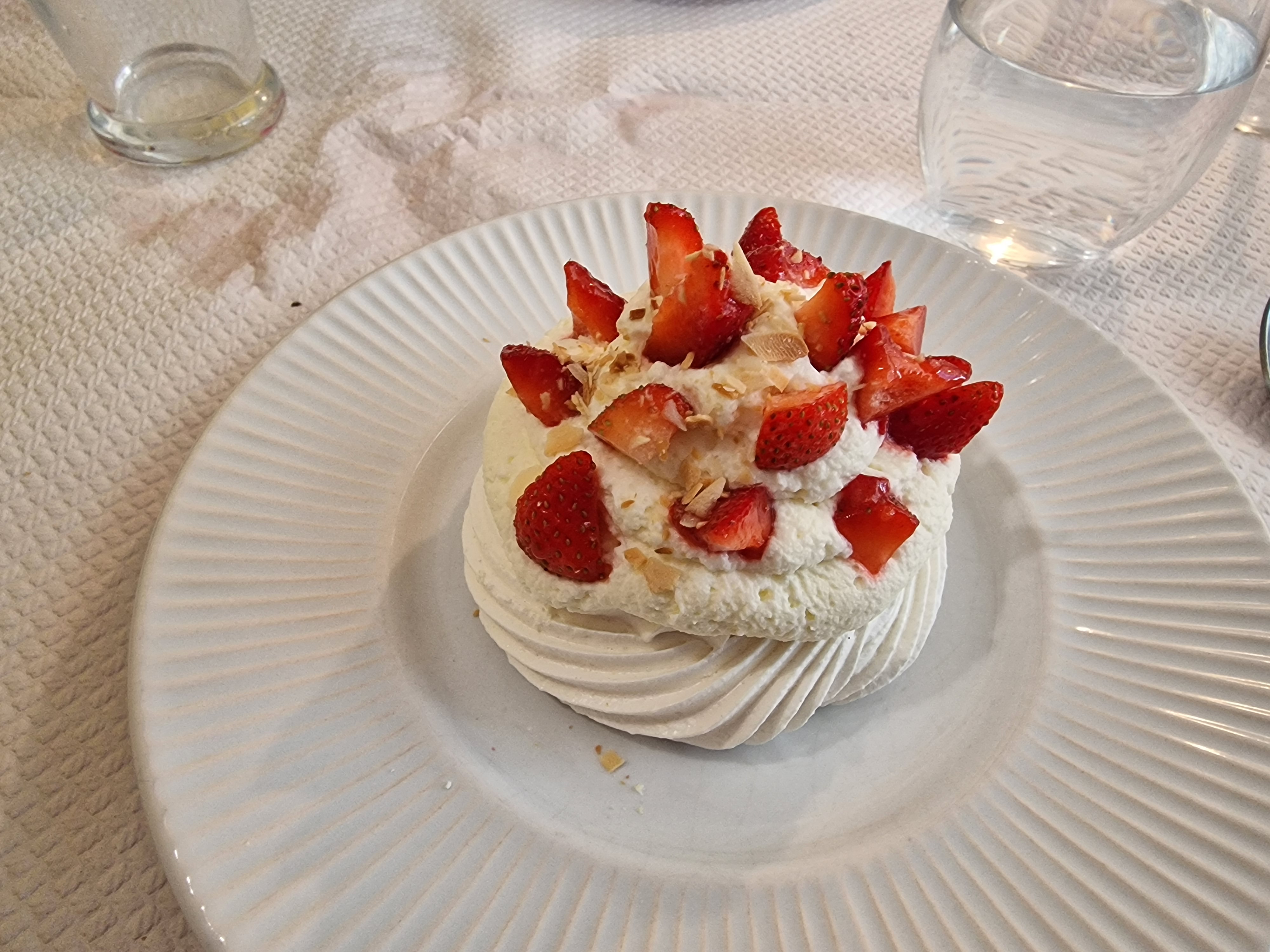 Plat du jour original et délicieux ! Pavlova aux châtaignes un régal! Sympathique repas de midi