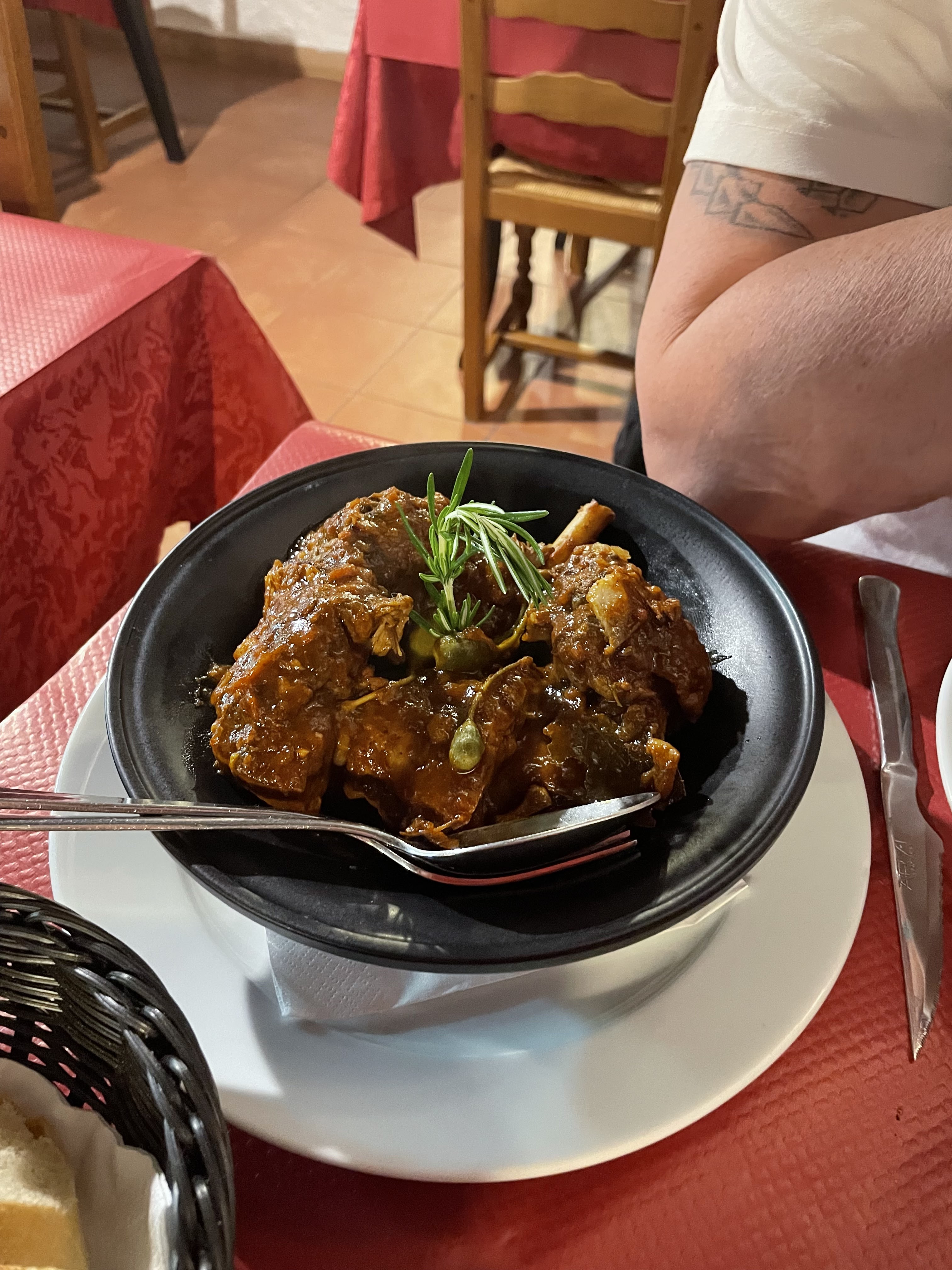 Waouh, tout simplement génial ! Un accueil très chaleureux du papy de la maison. Il nous a fait traverser le restaurant, qui ressemble presque à un musée, jusqu'à la belle terrasse. Le service était excellent. Nous avons d'abord mangé une salade avec des tomates et du fromage, puis le plat du jour, un jarret d'agneau. Que dire, c'était exceptionnel ! Recommandation absolue pour tous ceux qui souhaitent emporter quelque chose de Corse avec eux !