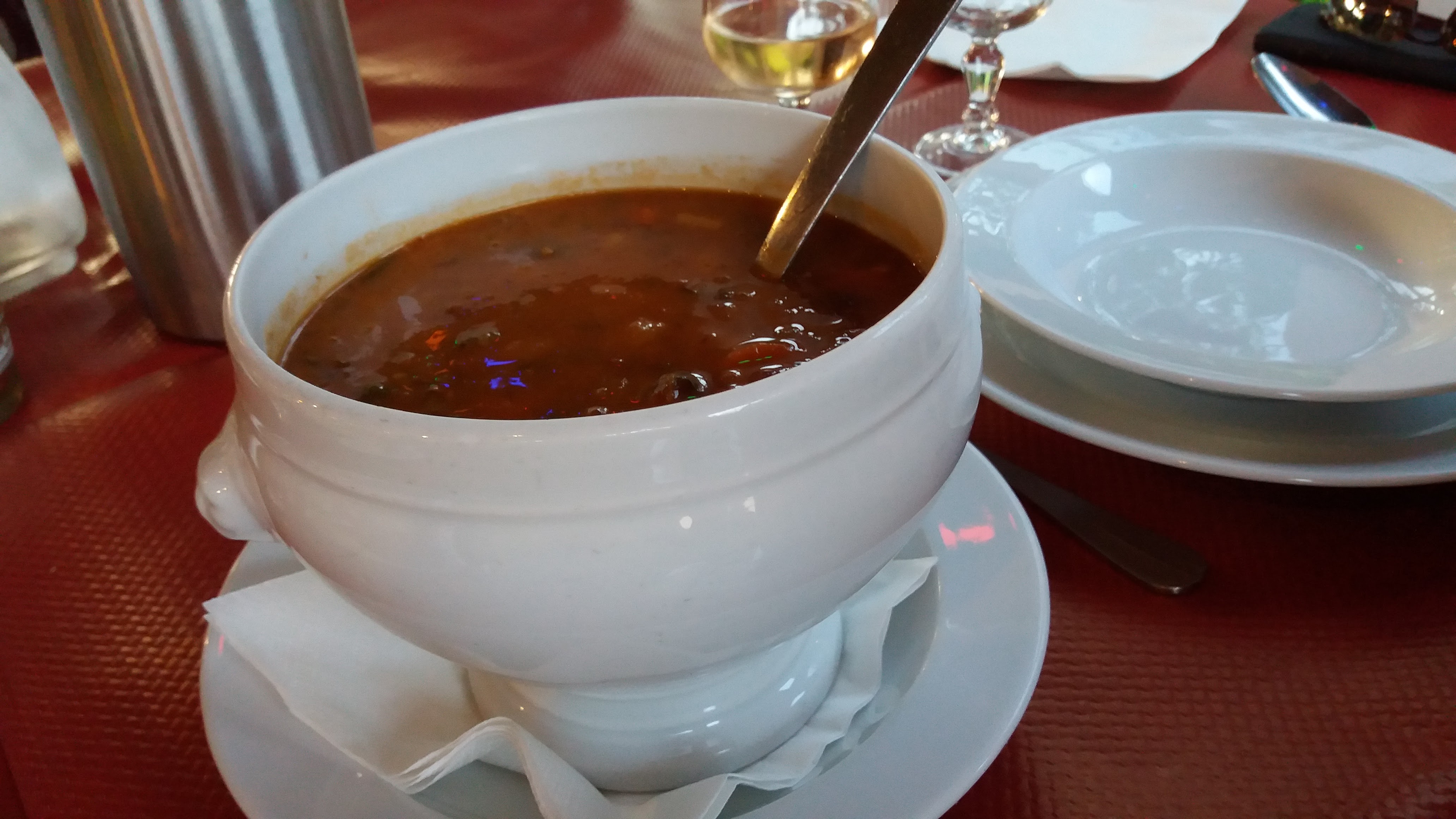 Sympa et bon, nous avons pris la soupe Corse à 14 euros( une soupiere pour 2) et une mousse à la châtaigne qui etait assez consistante pour 2 (8 €)
