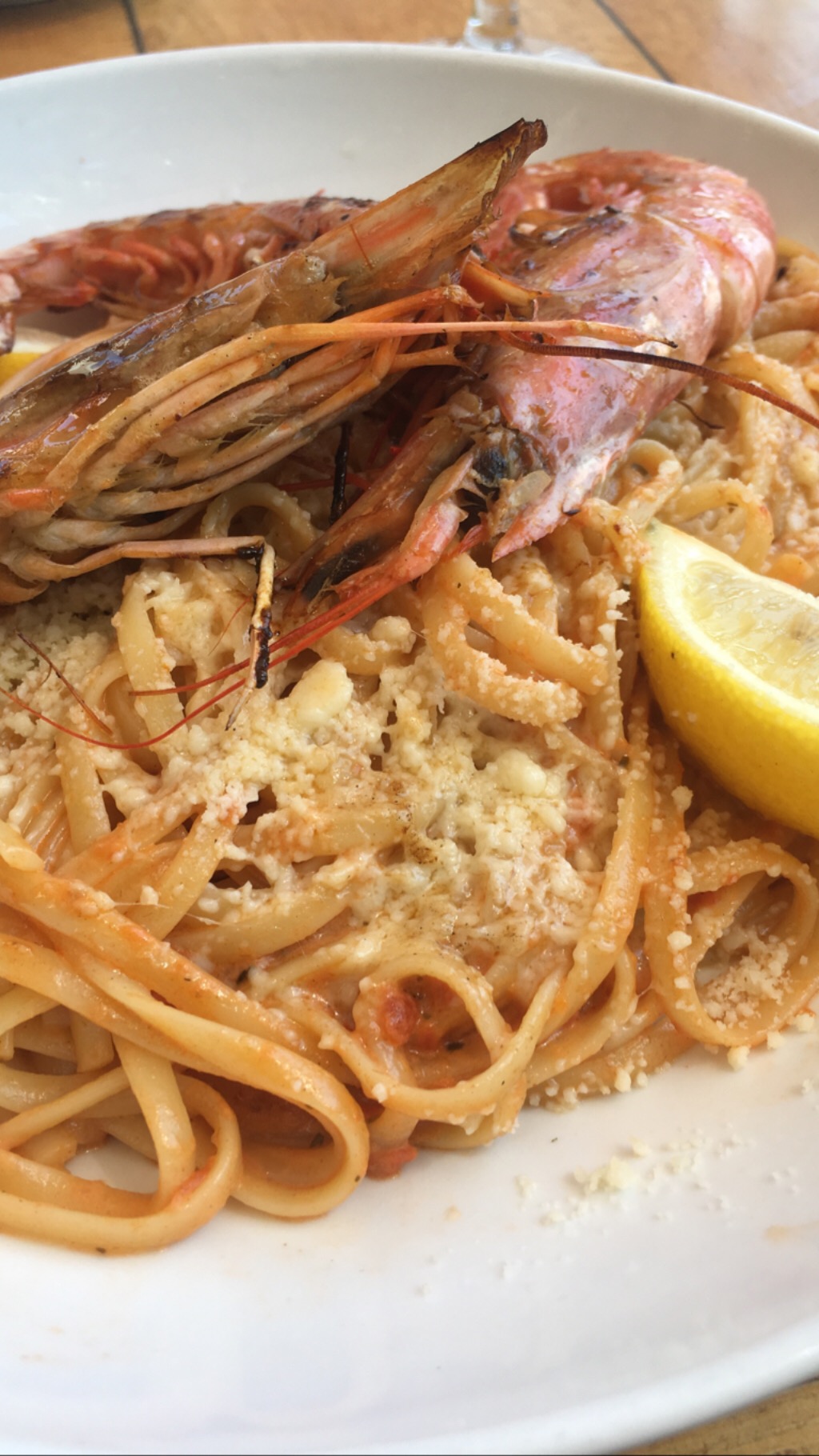 Restaurant bien situé avec une jolie vue. Le personnel n'est pas très serviable et pas vraiment enclin à nous servir. Les gambas seules ou avec les pâtes étaient farineuses certainement en raison d'une sur-cuisson. Par contre les calamars étaient excellents et servis généreusement. Le restaurant rencontre un flot incessant de clients qui viennent manger, mieux vaut réserver.