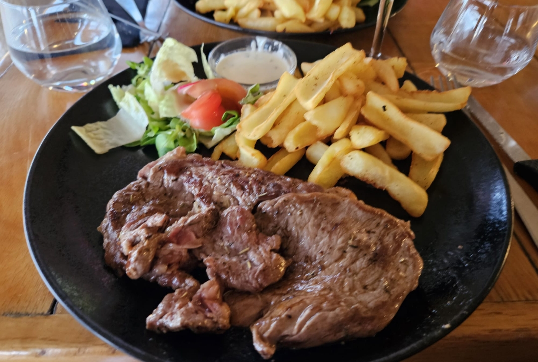 Attrape touriste..Nous avons mangés ce midi avec ma compagne dans ce restaurant, arrivés à 13h30, déjà 2 plats en moins sur la carte ( sur 6 ) mais pas enlevés sur le panneau à l'entrée ( premier jour de reprise mais cela n'excuse pas tout ).Les plats sont sans saveurs, nous laissant penser très clairement à des produits décongelés. En lisant les avis ci dessous, l'on parle de frites maisons, et bien ce n'est plus le cas ! Heureusement que les serveurs(euses) sont sympathiques et que la vue est belle sinon cela ne valais aucune étoile. A éviter.