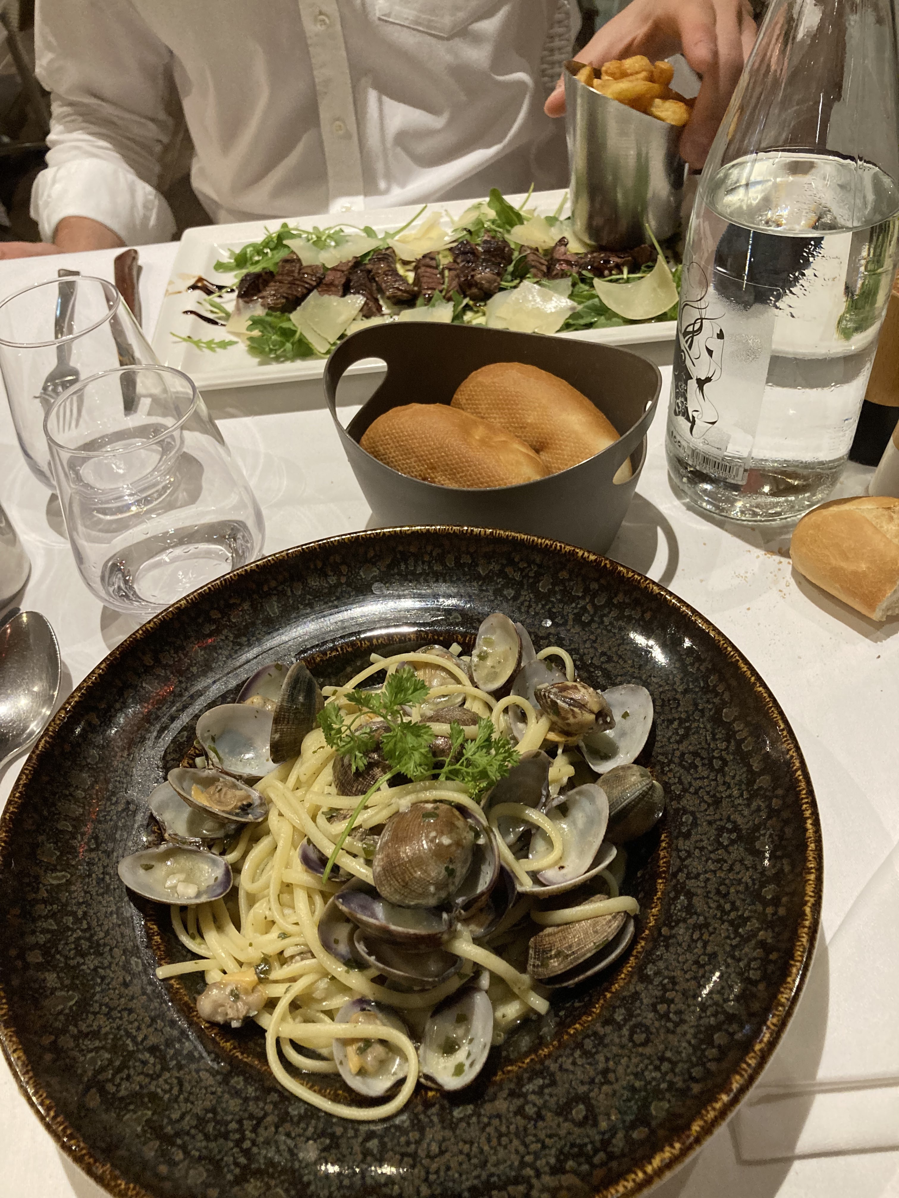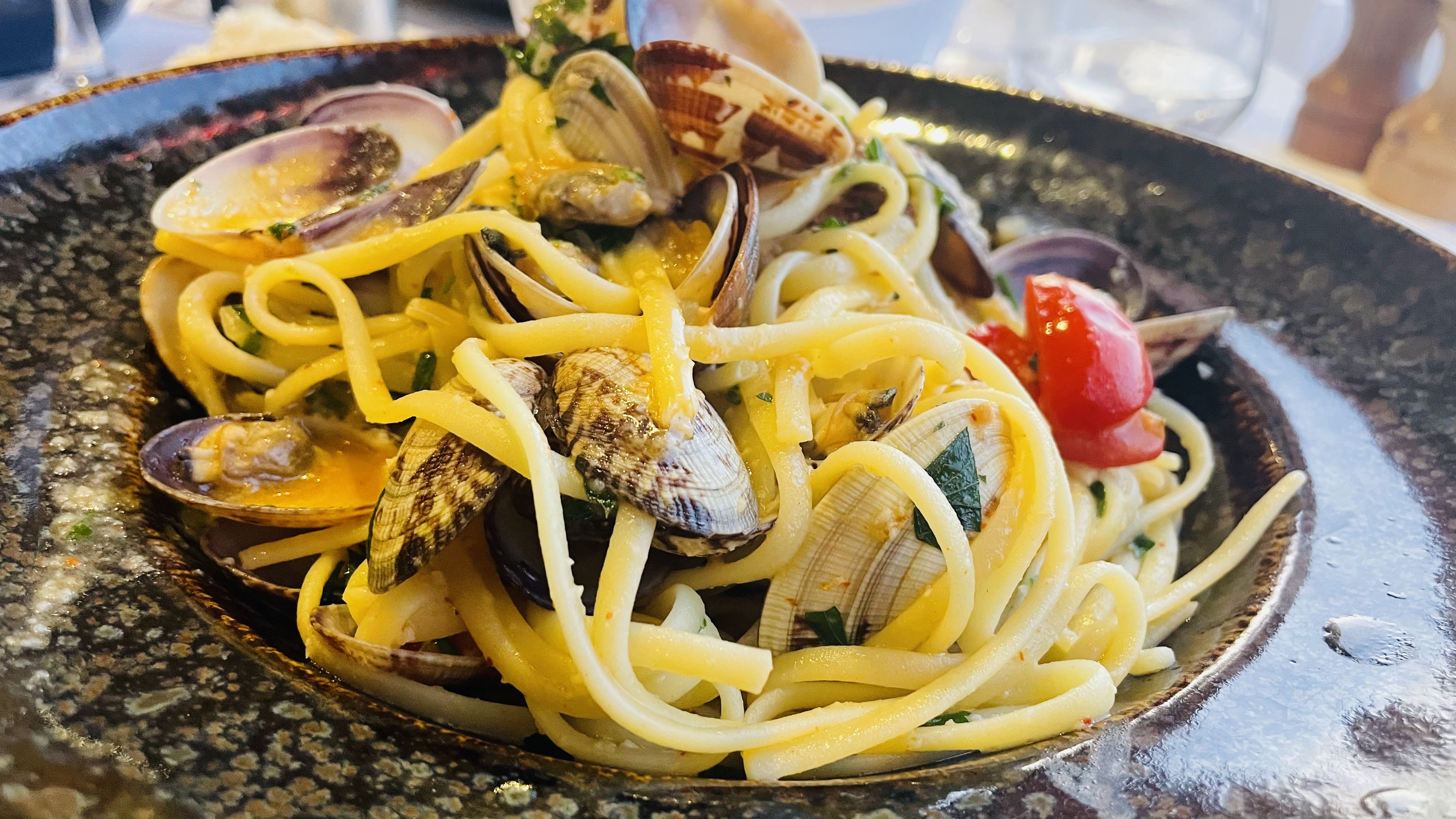 Nous avons mangé des linguines aux palourdes. Des pâtes avec beaucoup d'eau, sans parler de l'excès de ciboulette et d'ail qui s'y trouvaient
