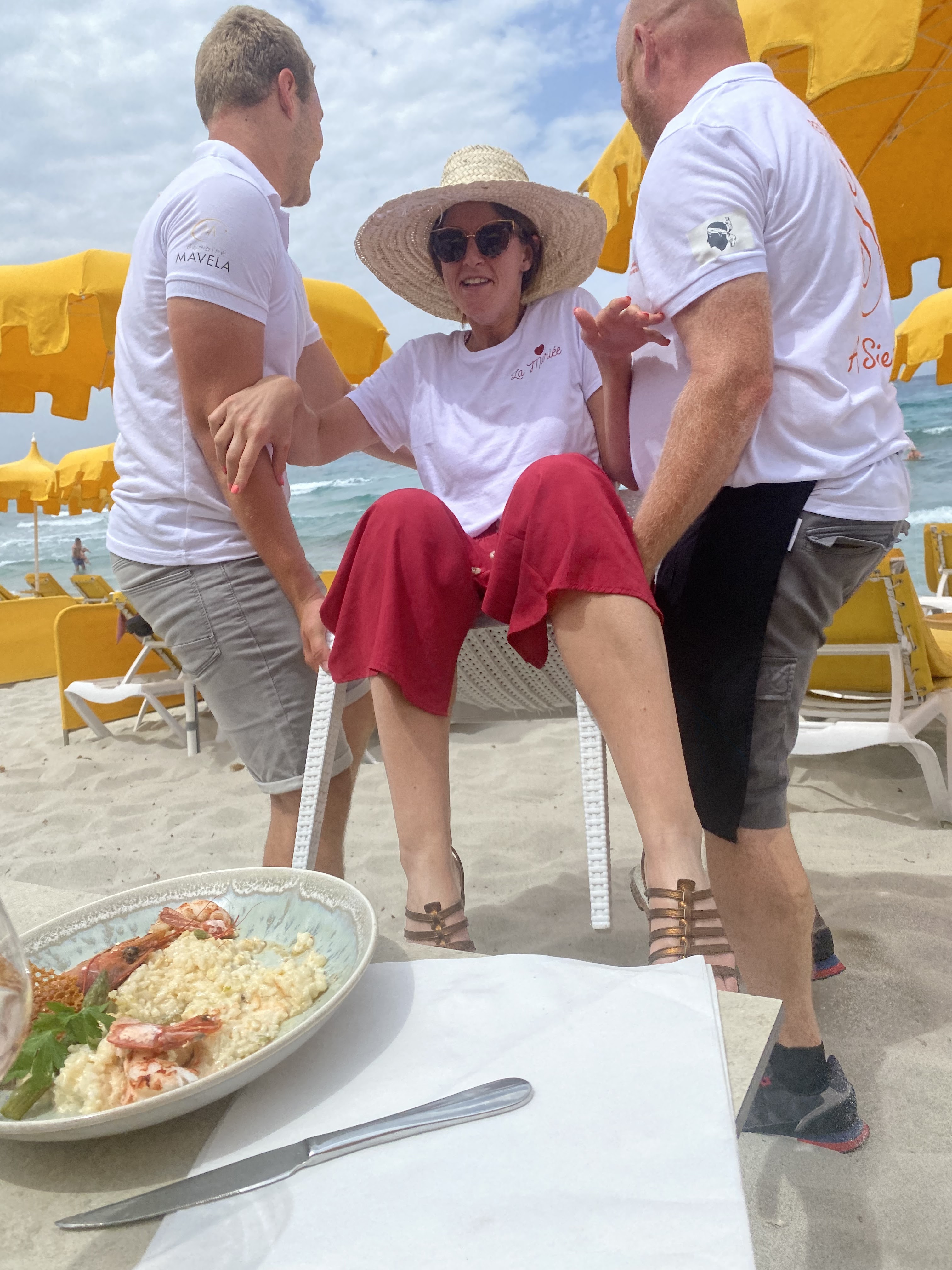 Un endroit exceptionnel…. J ai goûté quasiment tous les plats car tous mes dîners dans ce restaurant magique pendant mes vacances et tout est très bon, voire succulent avec des produits frais, poissons du jour, jolie présentation, copieux excellent rapport qualité prix et tout cela les pieds dans le sable avec une vue paradisiaque…. Bravo au chef ! André et Angela les patrons sont adorables et très à l écoute de plus ils sont entourés d une équipe de serveuses et serveurs extrêmement pros, très très occupés, mais toujours le sourire et faisant le maximum pour que tout se passe bien et vous satisfaire … une équipe remarquable ! vous y croiserez également des célébrités de tous domaines détendues et en vacances se mêlant aux vacanciers et si votre anniversaire se passe pendant votre venue car magique….fêtez le la .. Lumières éteintes la voix de Barry white « you are the first…. »surgit en même temps que votre gâteau illuminé sous les applaudissements de tous. … Franchement j ai adoré cet endroit tout y est pour passer une superbe journée ou soirée ! …et juste un conseil, réservez votre table …. Car toujours complet le jour même !!!! Je tiens à signaler que je n ai aucun intérêt financier ou autre mais quand c’est exceptionnel il faut le dire aussi.. Francoise /Fanf