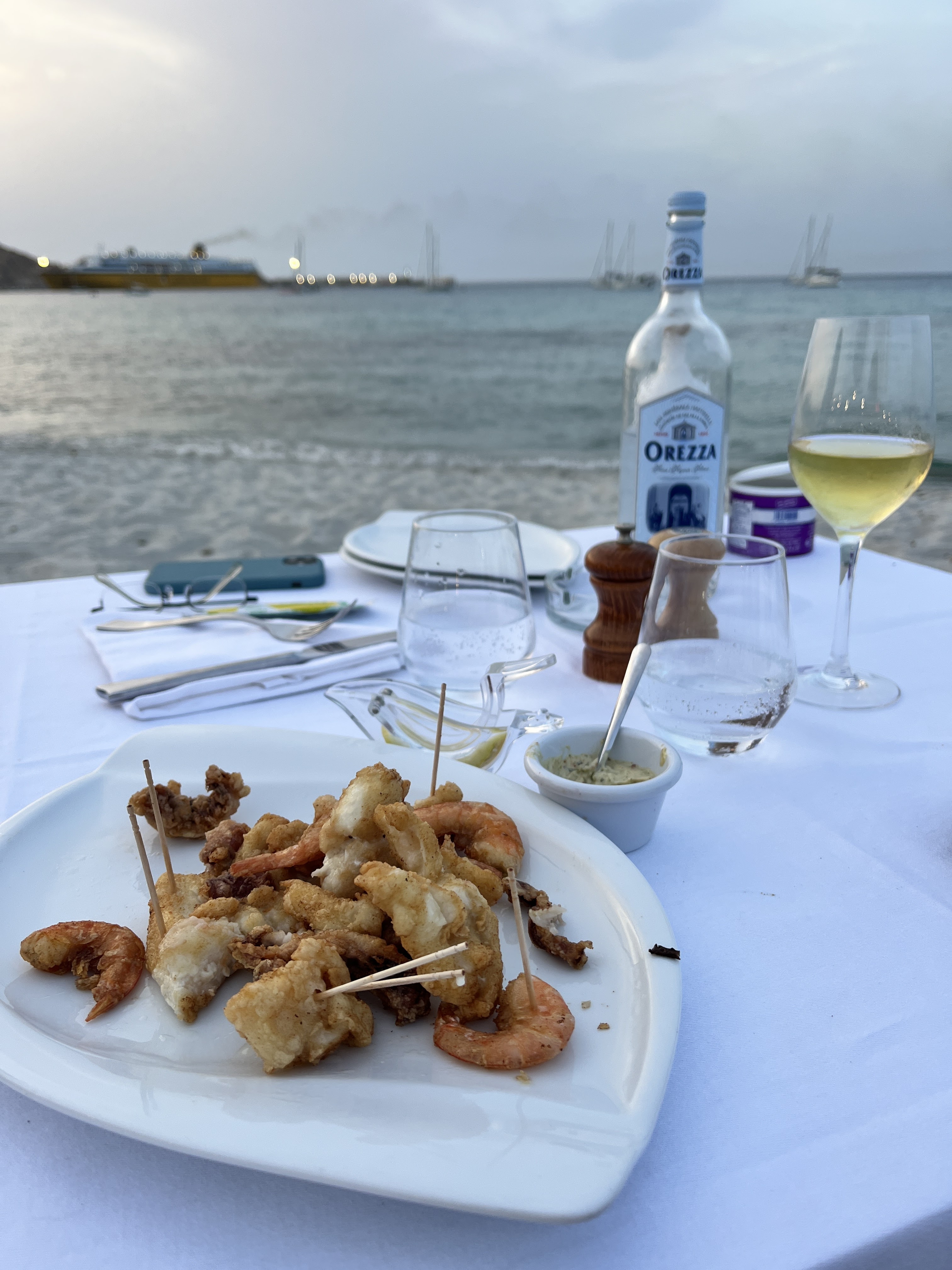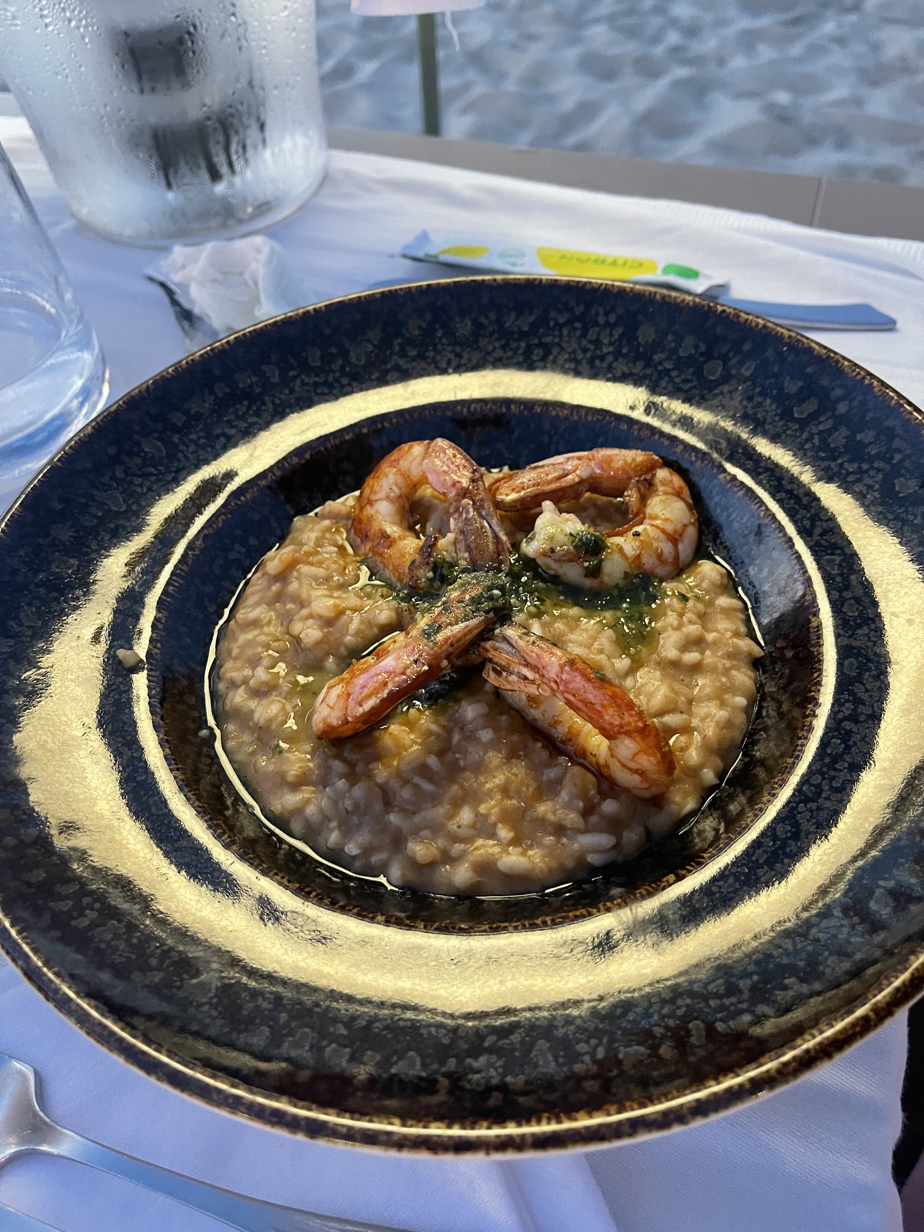 Restaurant sur la plage avec transats à disposition. Personnel attentif et accueillant Les calamars étaient délicieux. Le poisson entier était frais mais un peu cher. Les couteaux étaient sableux et moelleux. Le risotto était ok.