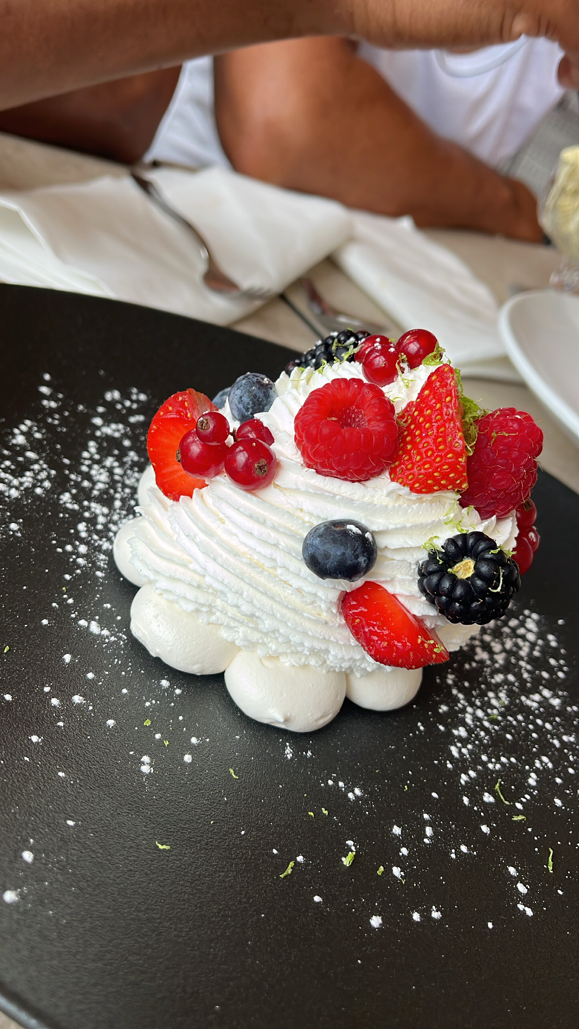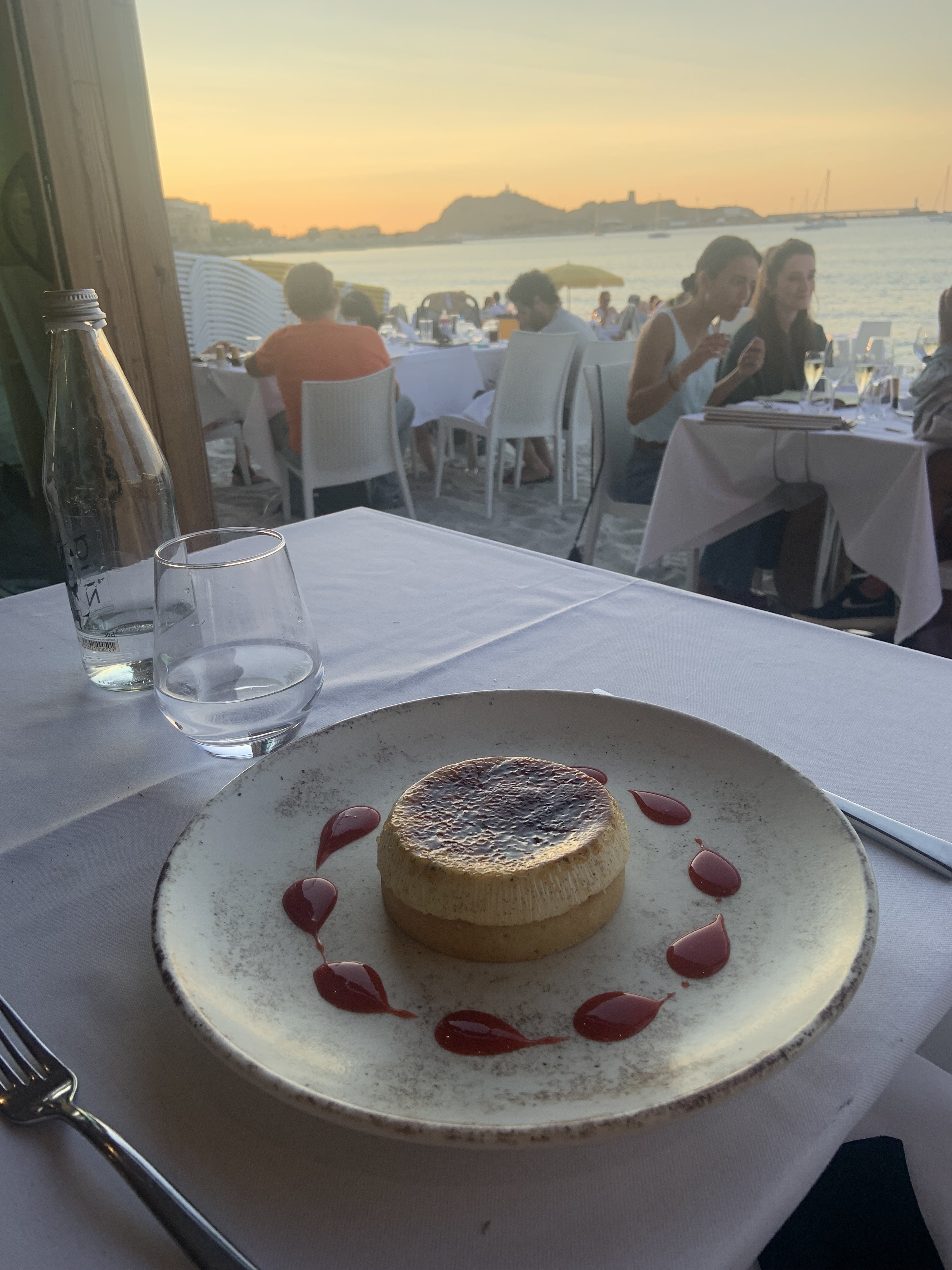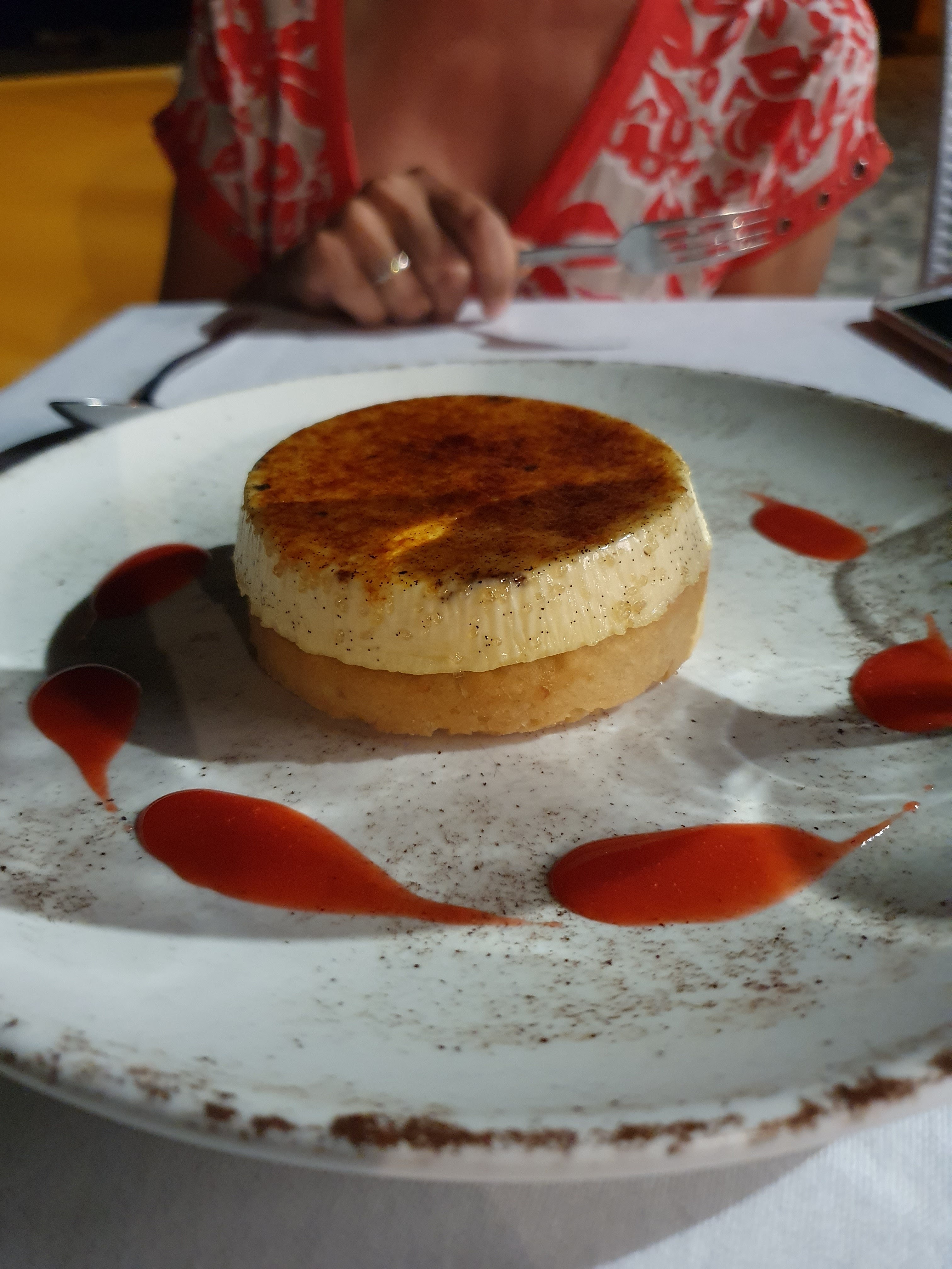 Super restaurant, avec table sur la plage 🤩 Belle carte de plats très bien préparés (moelleux de veau avec insert foie gras, ou le dessert en photo : financier pistache/amande et crème brûlée) Service efficace et sympathique