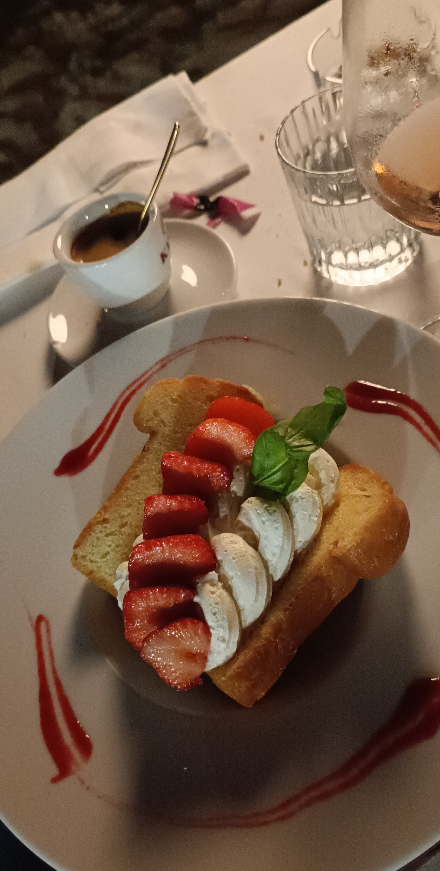 Pour un prix significatif, pour ne pas dire exorbitant ( presque 30€ pour une tagliata de bœuf qui n est en fait qu un petit steak coupé en tranches) les assiettes sont arrivées froides pour la viande, le risotto aux gambas était presque cru .... bref, à éviter.
