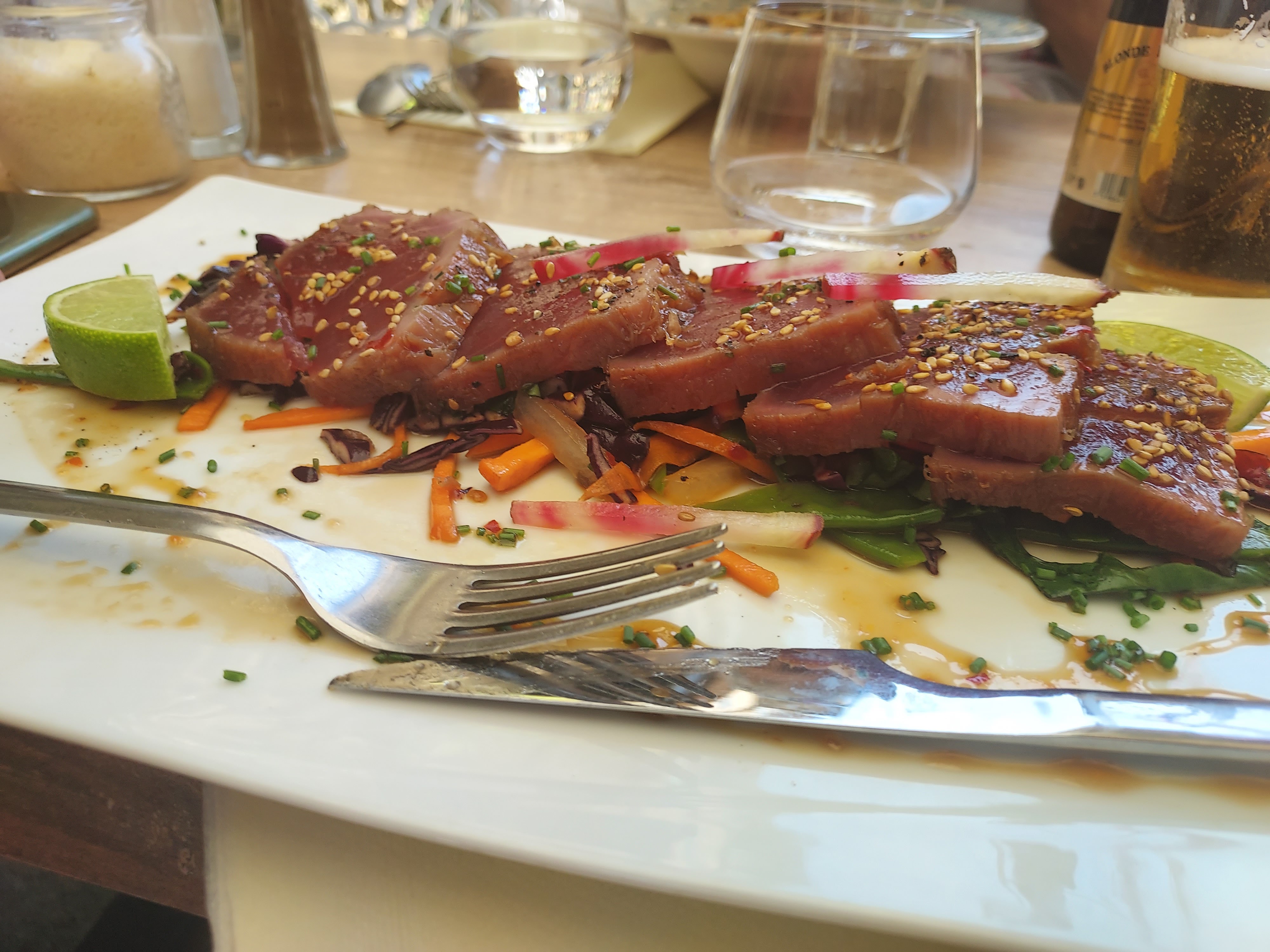 Excellent ! Nous nous sommes régalés. Entre Tataki de thon, salade César et pizza..un régal. Accueil top et serveuse adorable. Nous y retournerons c est certain. Les vacances ne font que commencer. Alors à très vite.☺️