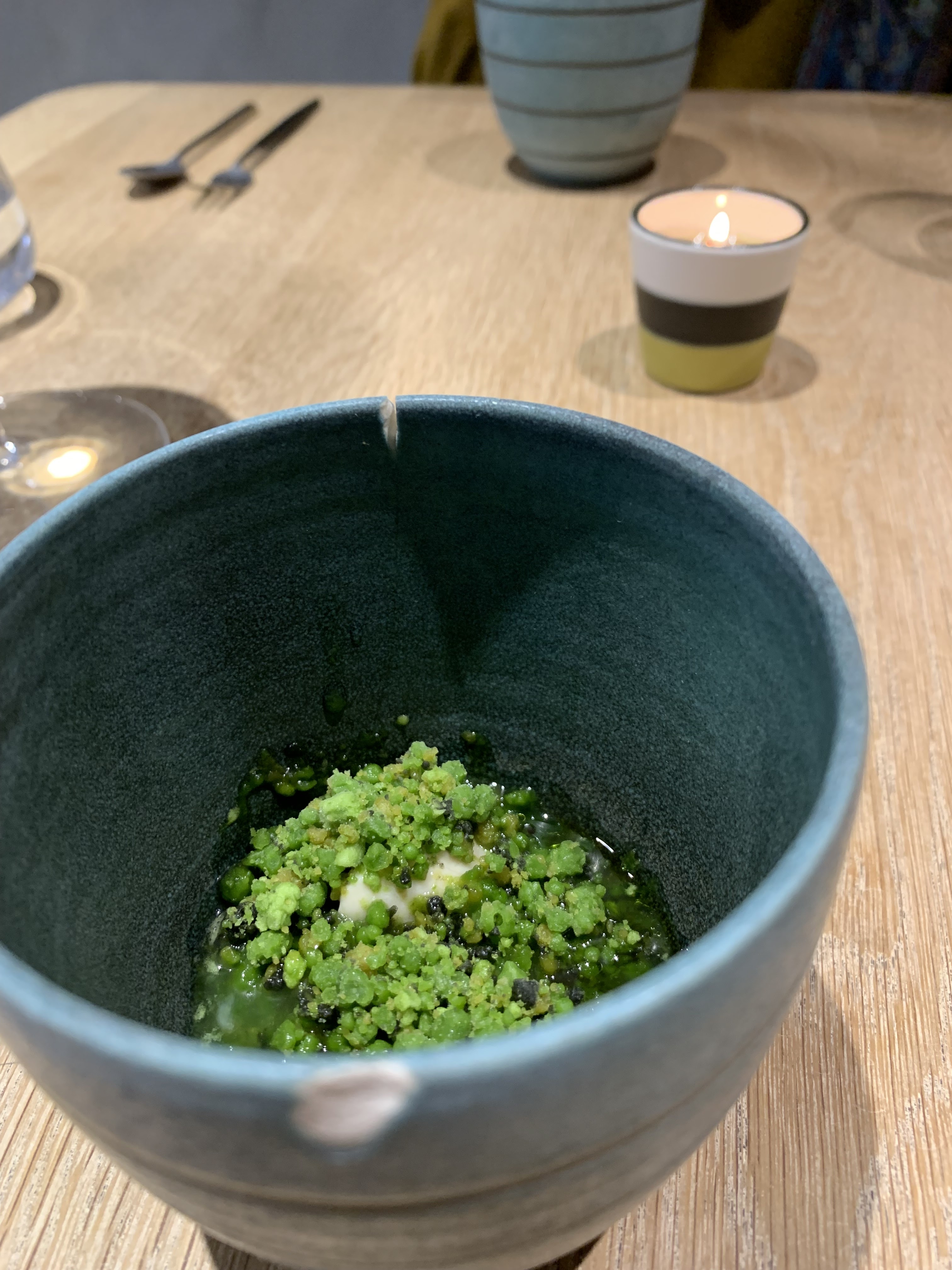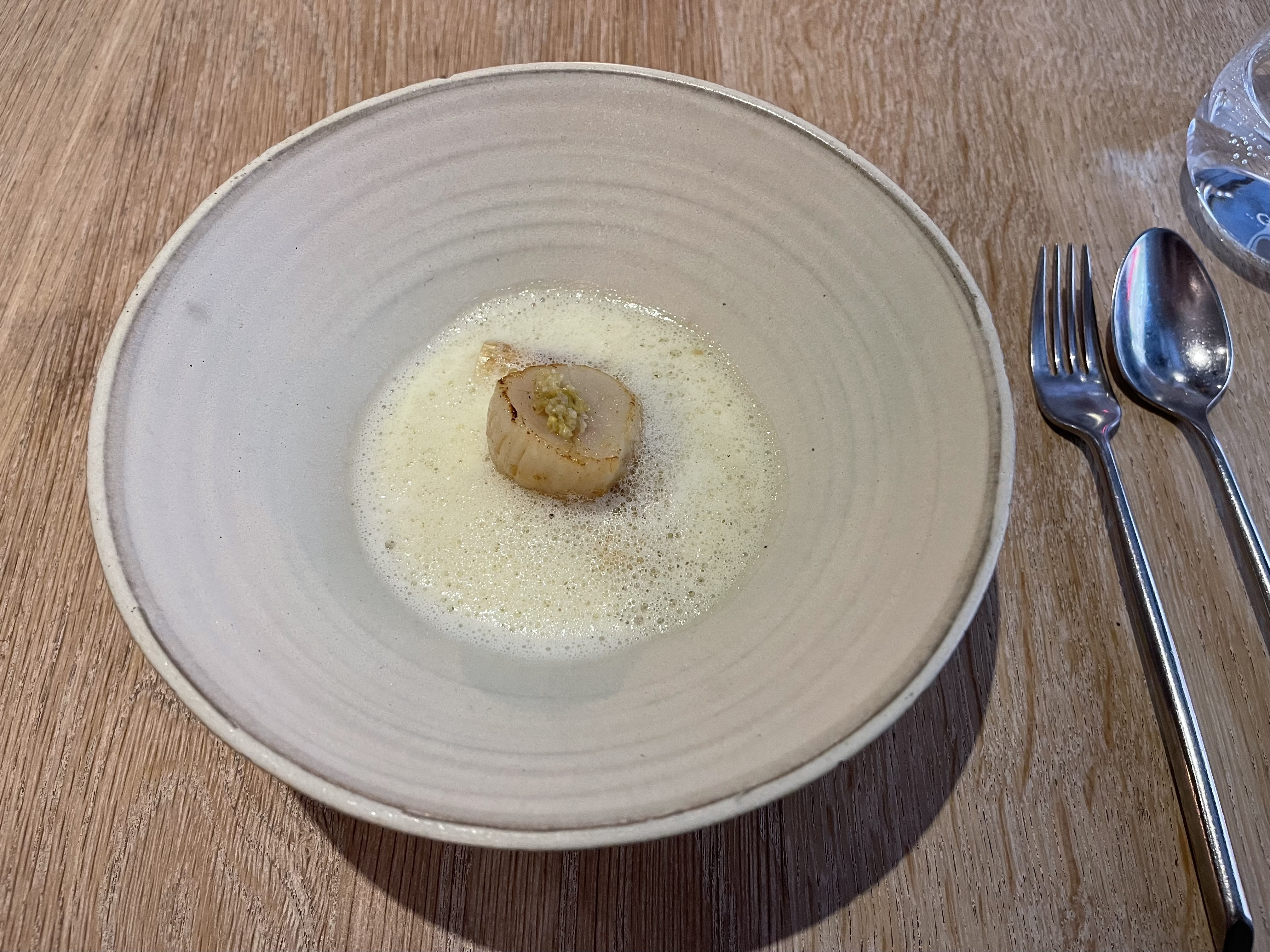 Formule déjeuner 75€ 🌟 Après avoir déjeuné une semaine, ils ont eu Michelin ⭐️ 2022 Dans l'ensemble, les entrées étaient très excellentes et le chef cuisinier est japonais, ce qui me permet de manger beaucoup d'éléments japonais dans sa nourriture. Le principal était?. Seuls les desserts n'étaient pas mon genre. 🔘Poireau/beurre noisette Début parfait. J'ai adoré le beurre noisette fait de poireau pas trop fort et plus onctueux. 🔘Moules J'ai vraiment adoré ! La tarte était un peu fumée et croustillante, et les moules étaient fraîches, riches et crémeuses, tout va bien ! 🔘Araignée de mer/tonka/carottes Le crabe était tendre et le bouillon était tellement frais et riche, j'ai adoré le cours. 🔘chinchard /oca du Pérou /bergamote Style très japonais, bergamote faite de maquereau fruité et élégant 🔘pétoncle/pois/fleur de sureau Standard, les pétoncles étaient parfaitement cuits. 🔘Pigeon du Poitou J'aimais plus les pieds que la viande. Des pieds bien rôtis Aux riches épices. La viande était un peu crue et avec des sauces différentes mais pas mon genre. 🔘Poire/betterave / Rose Séparément en trois étapes, je n’ai pas aimé le pair à la betterave, à la fois en termes de texture et de goût de betterave. Et je n’ai pas compris ce qu’était la branche ; ça avait un goût collant et comme de la gomme.