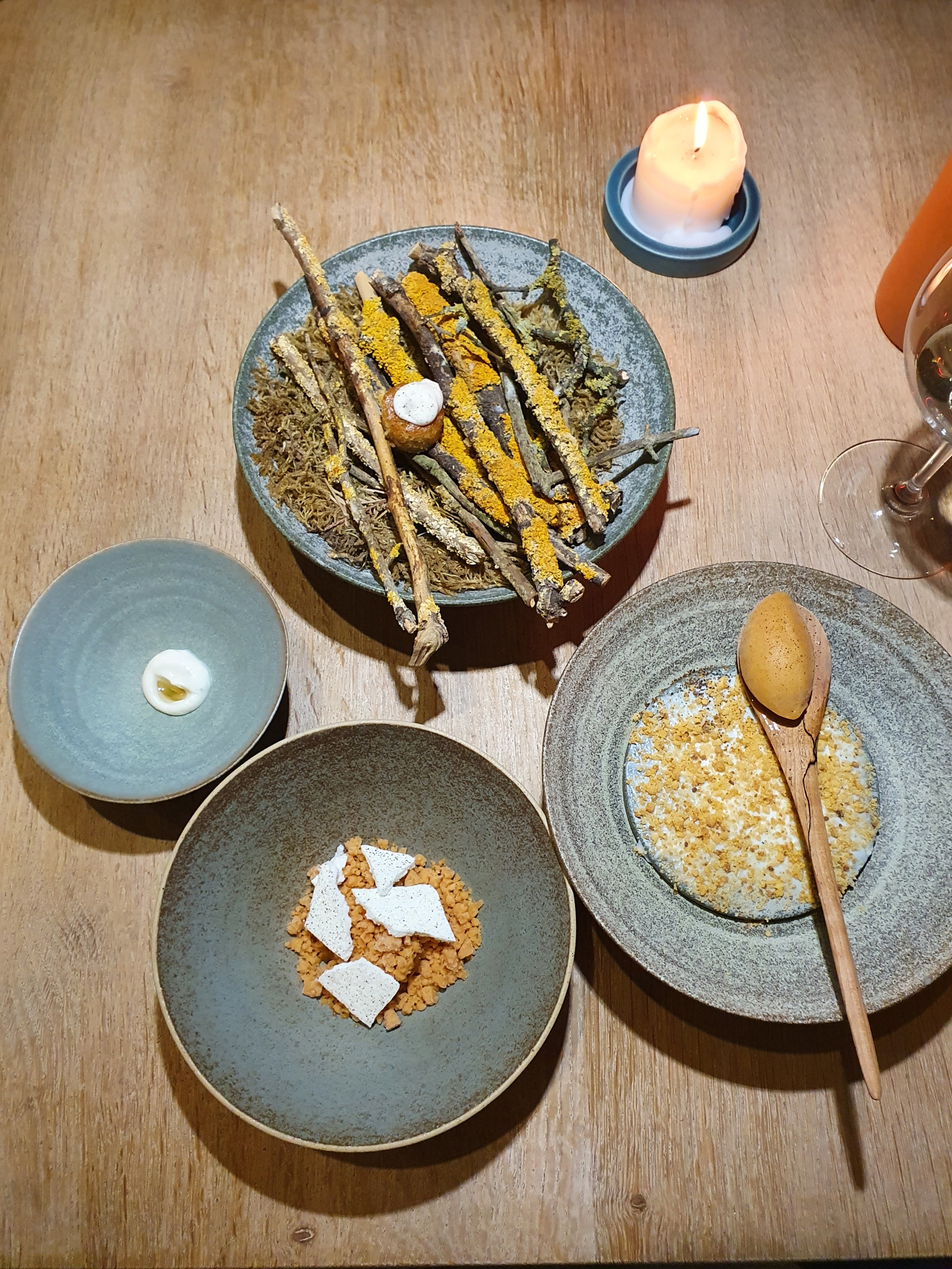 EXTRAORDINAIRE d’un bout à l’autre! De l’art pour les yeux et le palais!!! Tout y est! Le service est exceptionnel et convivial, chaleureux même, le décor complété à merveille l’aspect artistique de chaque plat! Et que dire de la sélection de vins naturels du sommelier!!! N’hésitez pas à y aller, vous serez conquis, vous serez émerveillés!