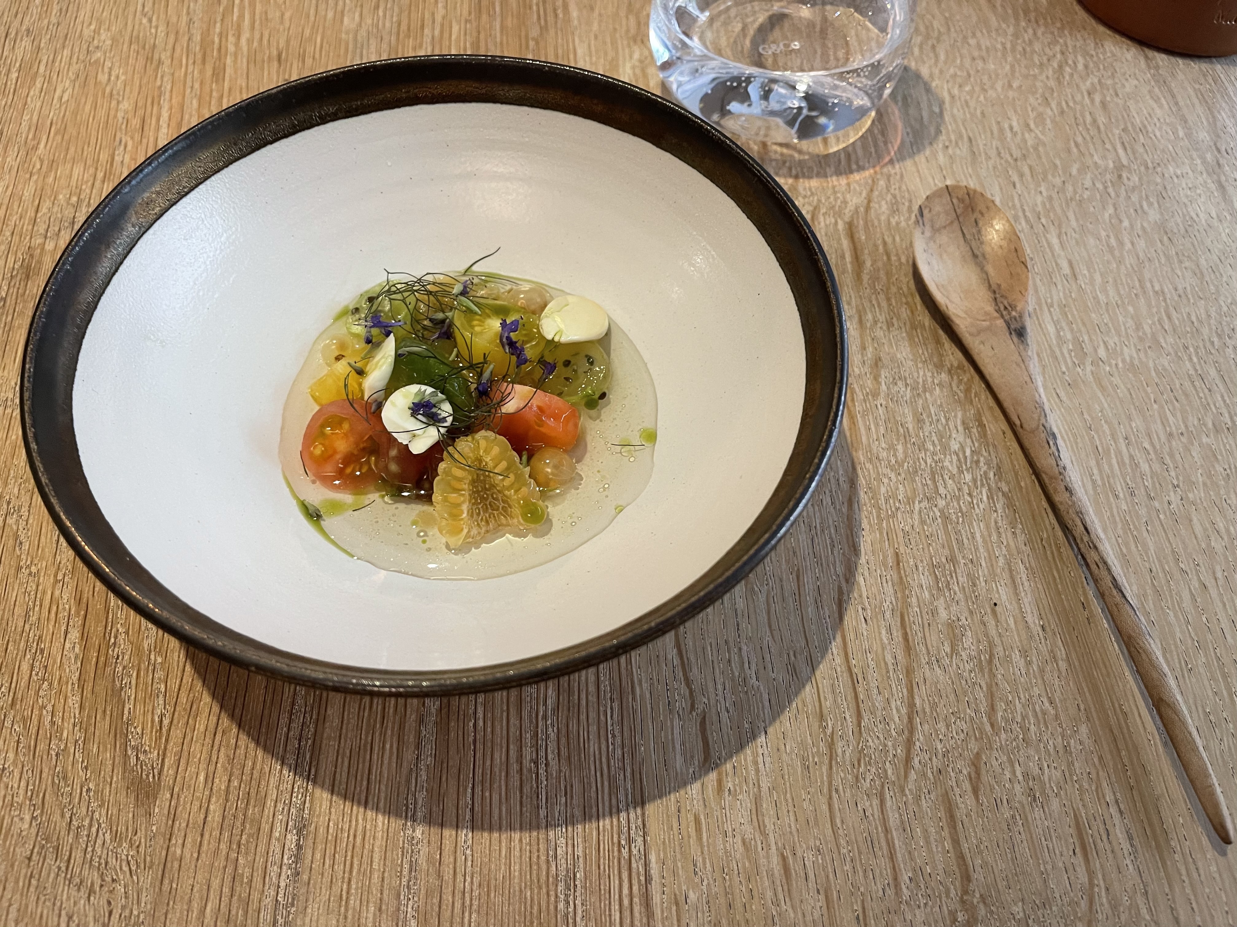 Un déjeuner mémorable. Une expérience unique, un voyage gustatif, tous les sens en éveil et on en redemande. Tout était à notre goût, une salle intime avec 8 tables, une ambiance cosmopolite (nous étions les seuls français) une attention de chaque instant mais sans ce vernis souvent caractéristique des étoilés Michelin. Les serveurs ne sont pas que des serveurs, ils travaillent en cuisine à l'unisson avec le chef et quel chef. Il ose le Monsieur ! Il crée, il s'amuse avec notre palais et tous nos sens. Mis à part la tomate, toutes les saveurs étaient inédites ! Bravo à lui, à toute l'équipe, un grand merci pour ce merveilleux moment, nous reviendrons en famille avec délectation. Et pour le plaisir des yeux quelques photos à partager.