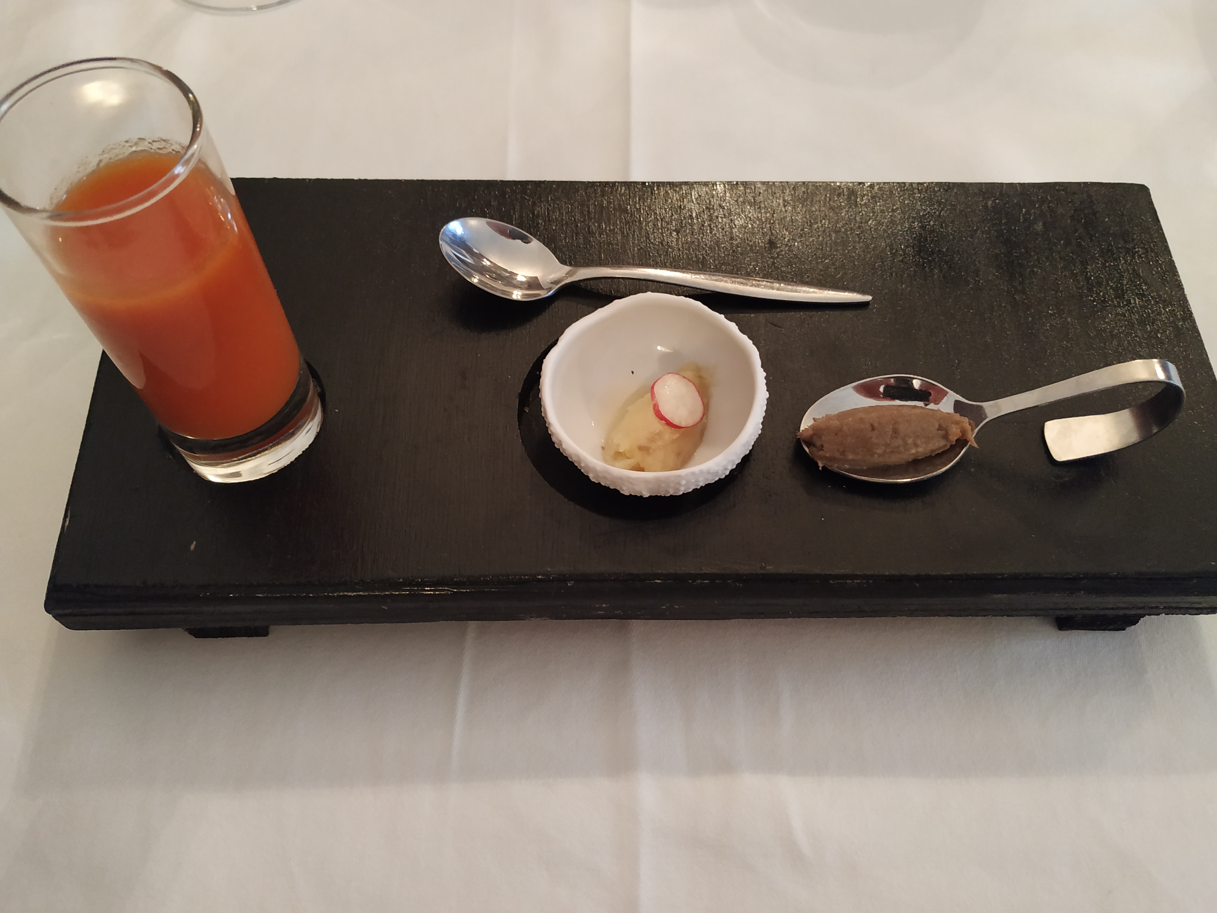 Très bon restaurant mise en bouche très originale Il manque peut-être un peu de déco dans l assiette service agréable et souriant