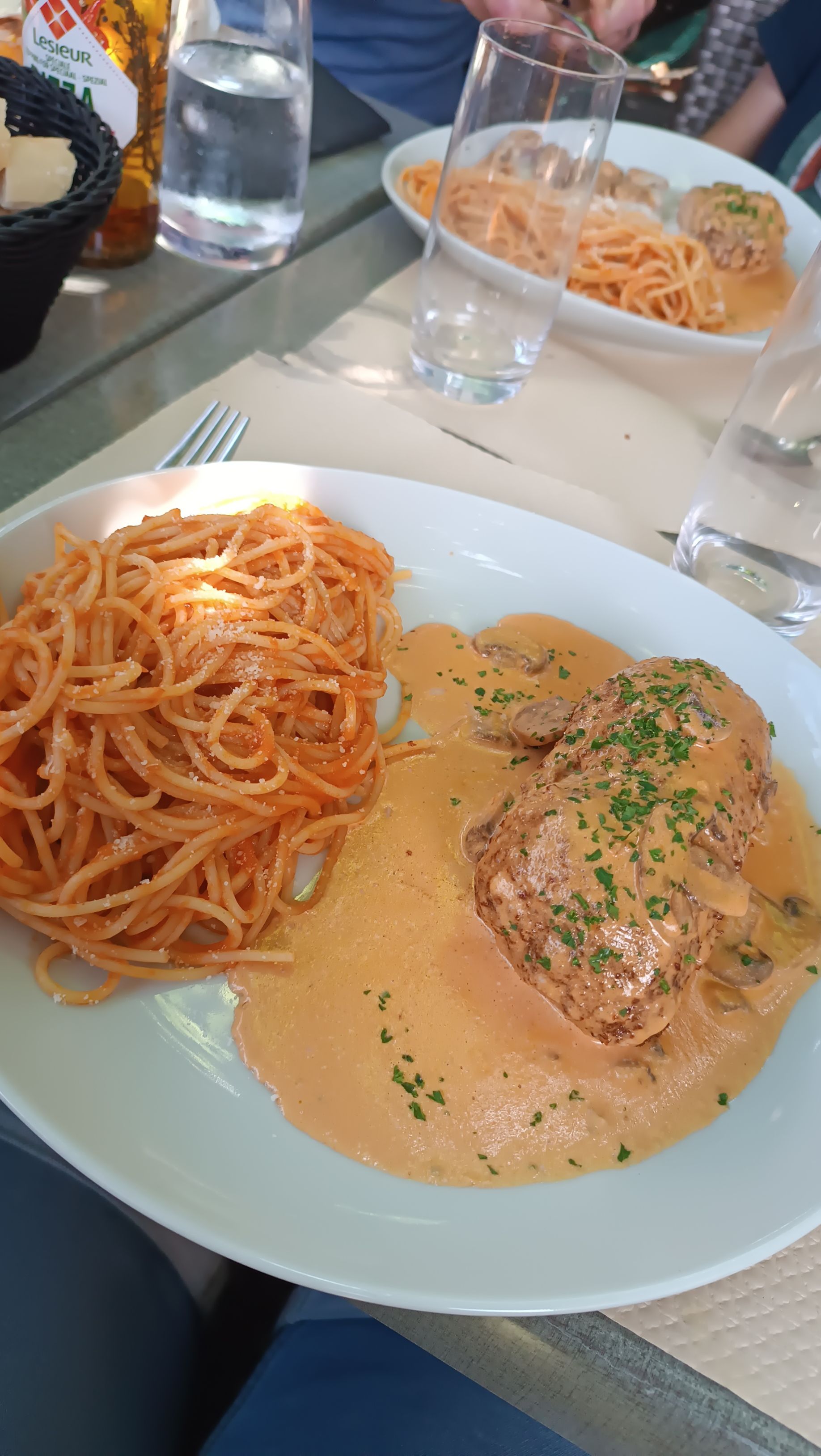Nous avions pris chacun une entrée, et nous étions déjà presque calés. Le cordon (et ses pates) sont très bons. Le cordon bleu est très généreux. Le service est très sympa et le restaurant est beau et propre.