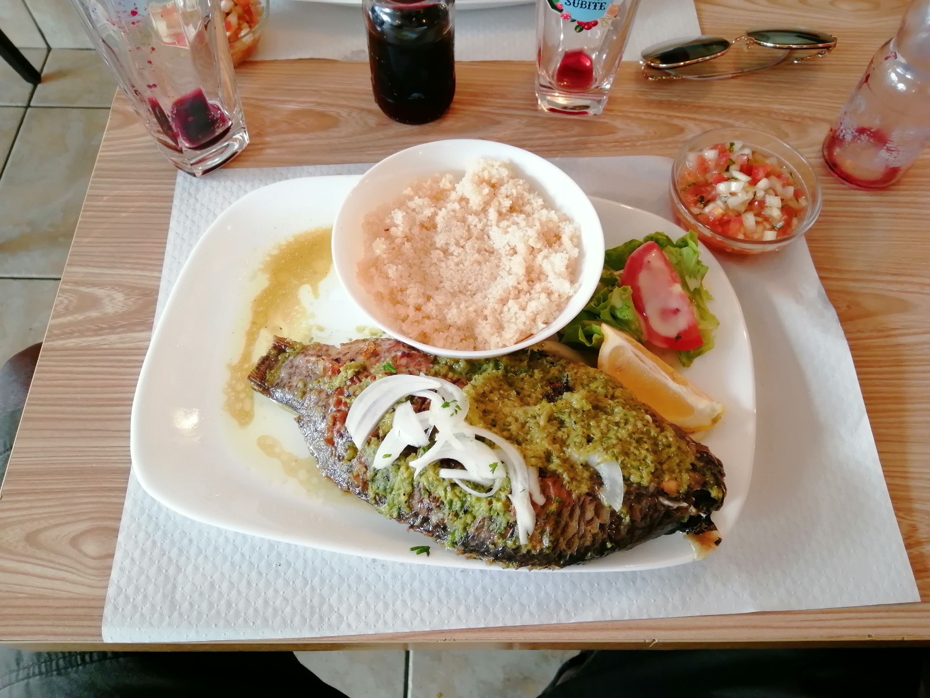 Plats sont tres bons(grillades)jamais manger la sauce labas surement bientôt! Sinon tres frais et bon.L'équipe est sympa ..Merci pr votre accueil