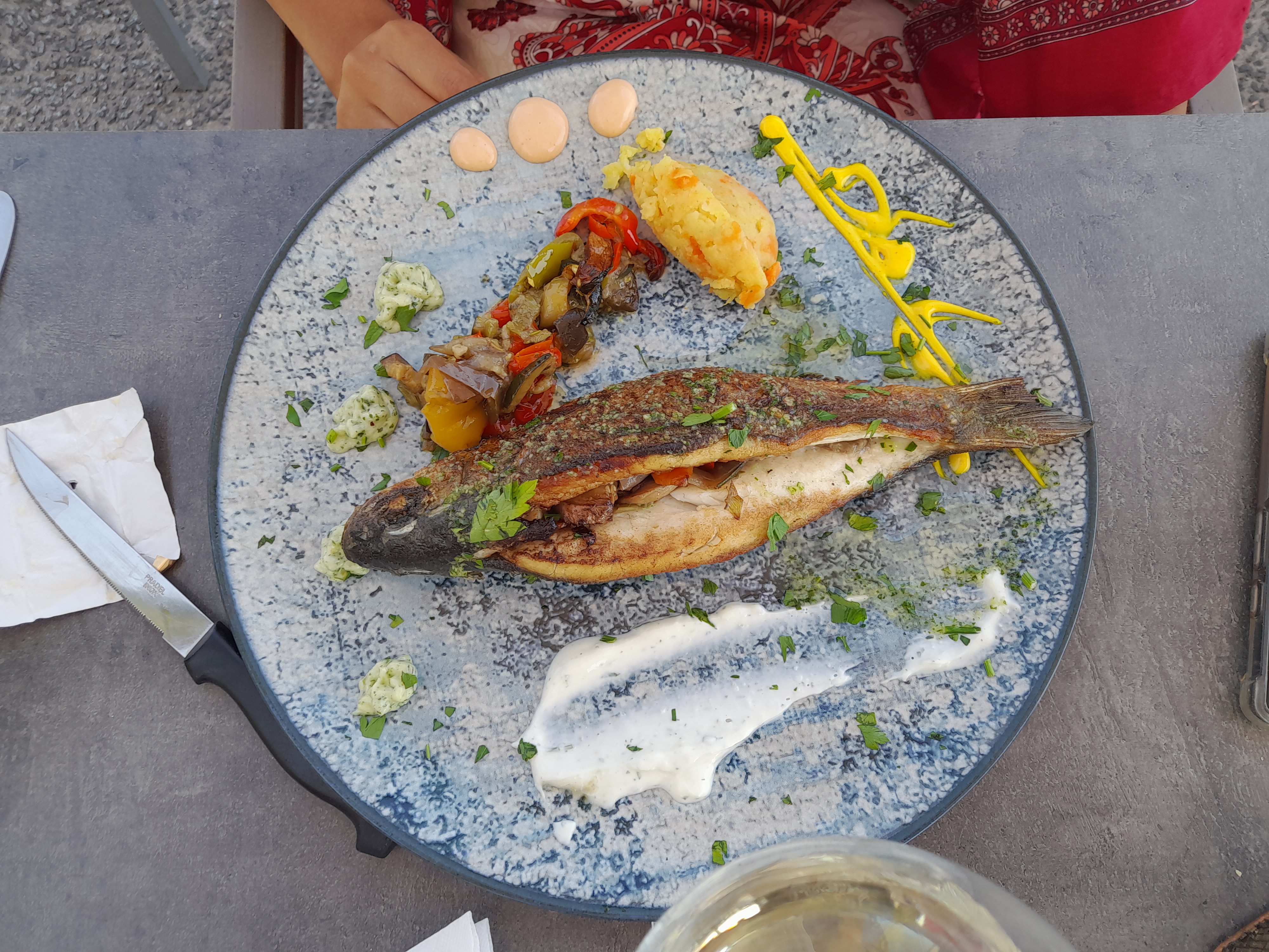 Nous avons passé un très agréable moment. Le personnel est très professionnel, vraiment adorable au petit soins avec la clientèle. C'est la première fois que je déguste un plat de poisson aussi bon,goûteux, savoureux et tres copieux, un vrai bonheur. Je recommande vivement. Nous souhaitons à toute l'équipe une belle saison estivale . Nous reviendrons avec grand plaisir.