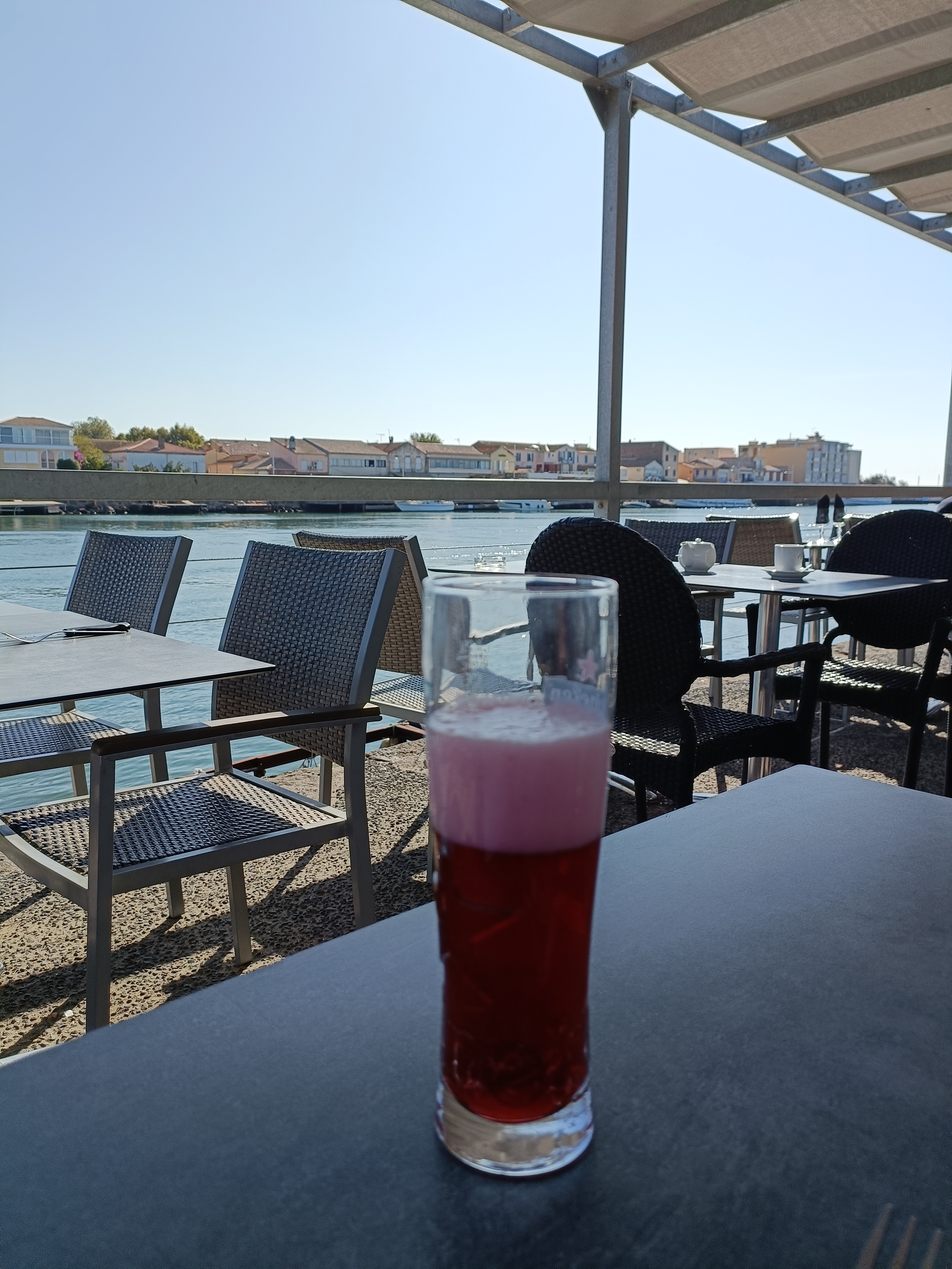 Agréable endroit sur les bords de l'Hérault . Savourer un verre en regardant les bateaux prendre le large, un instant magique . Je n'ai pas encore d'opinions sur la cuisine. La déco extérieure est originale.
