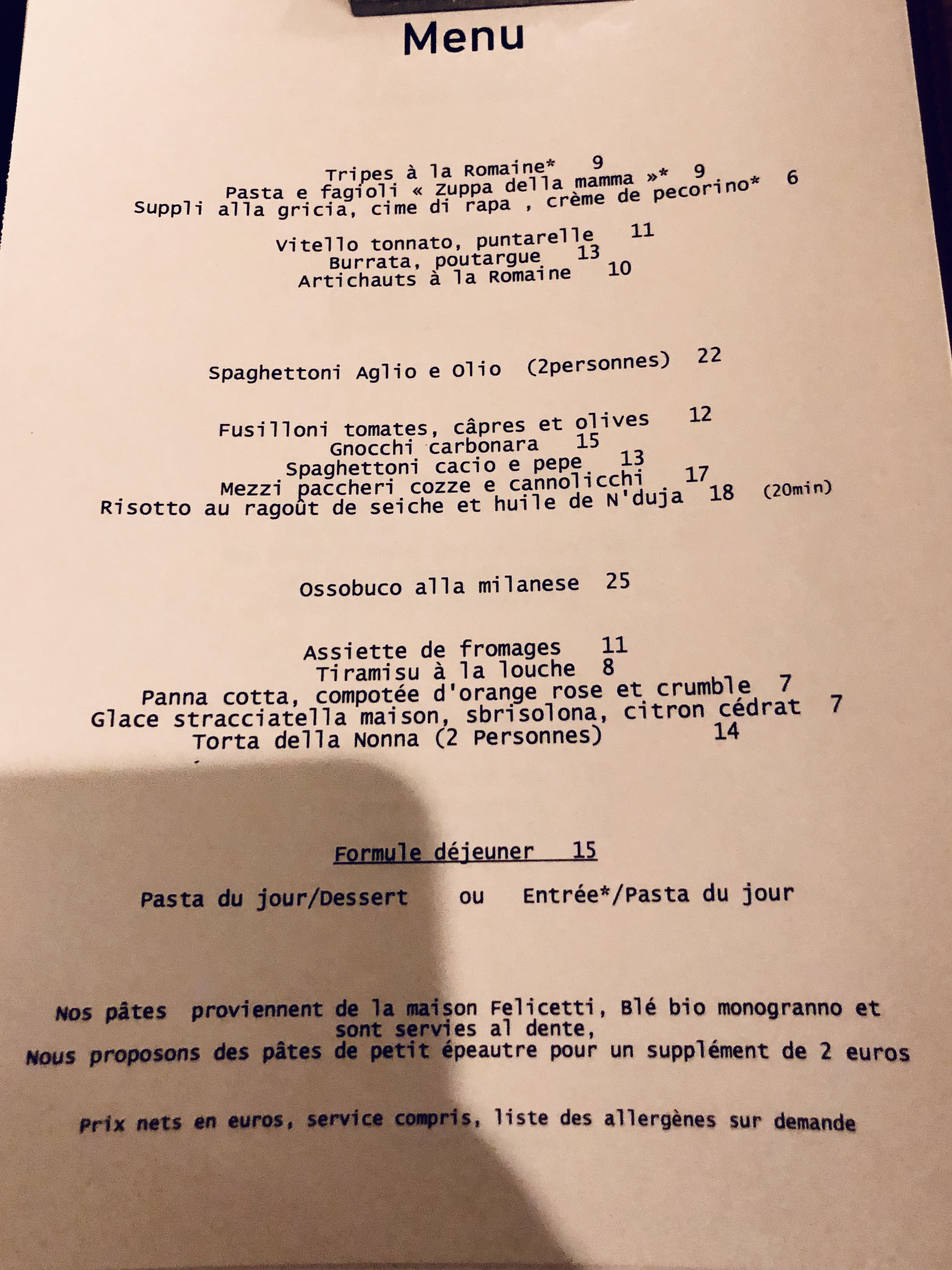 nouveau italien dans le quartier menu dejeunner a 15 euro entree plat ou plat dessert excellent vrai italien me suis regale accueil sympa et chalereuxp