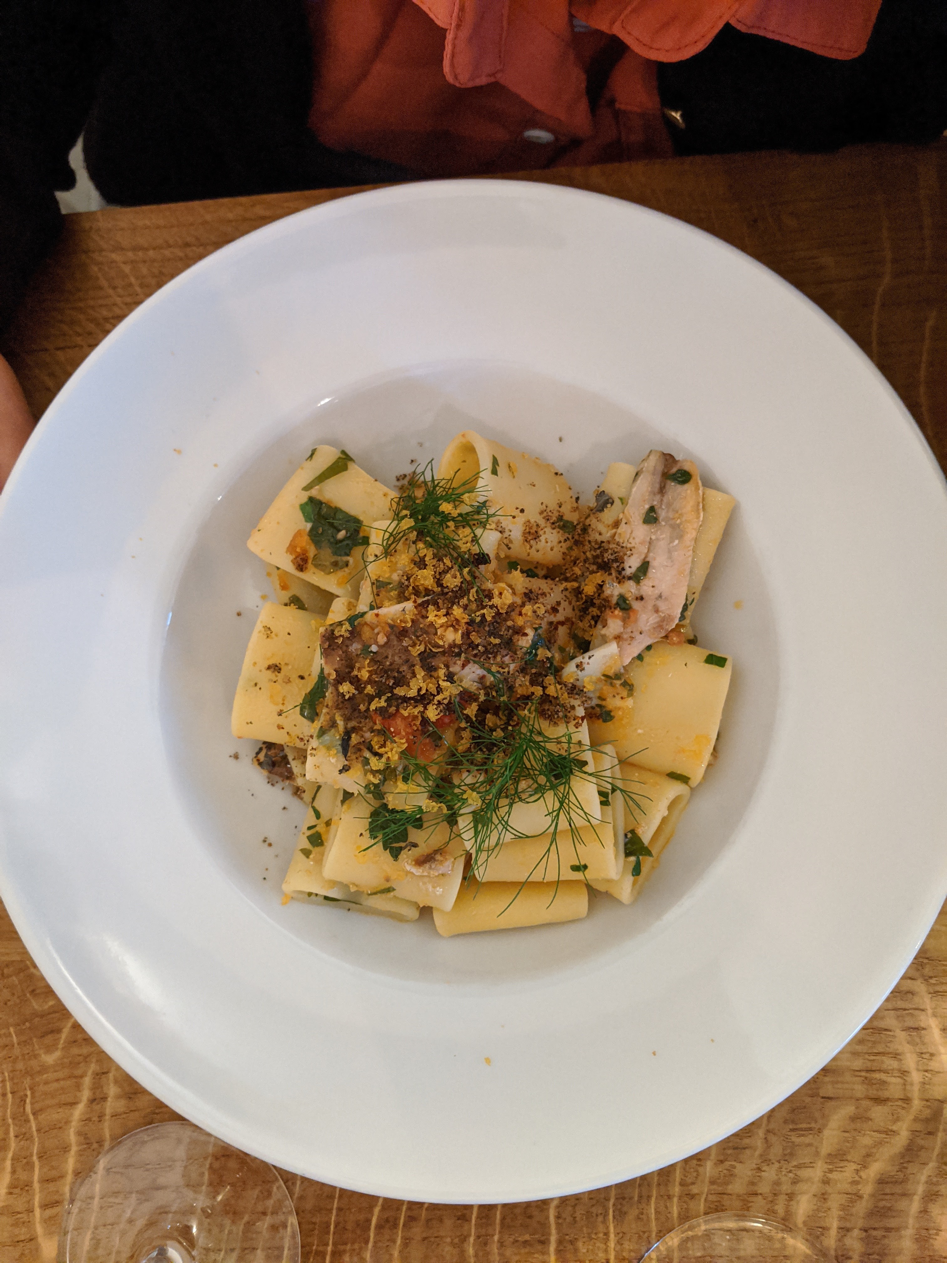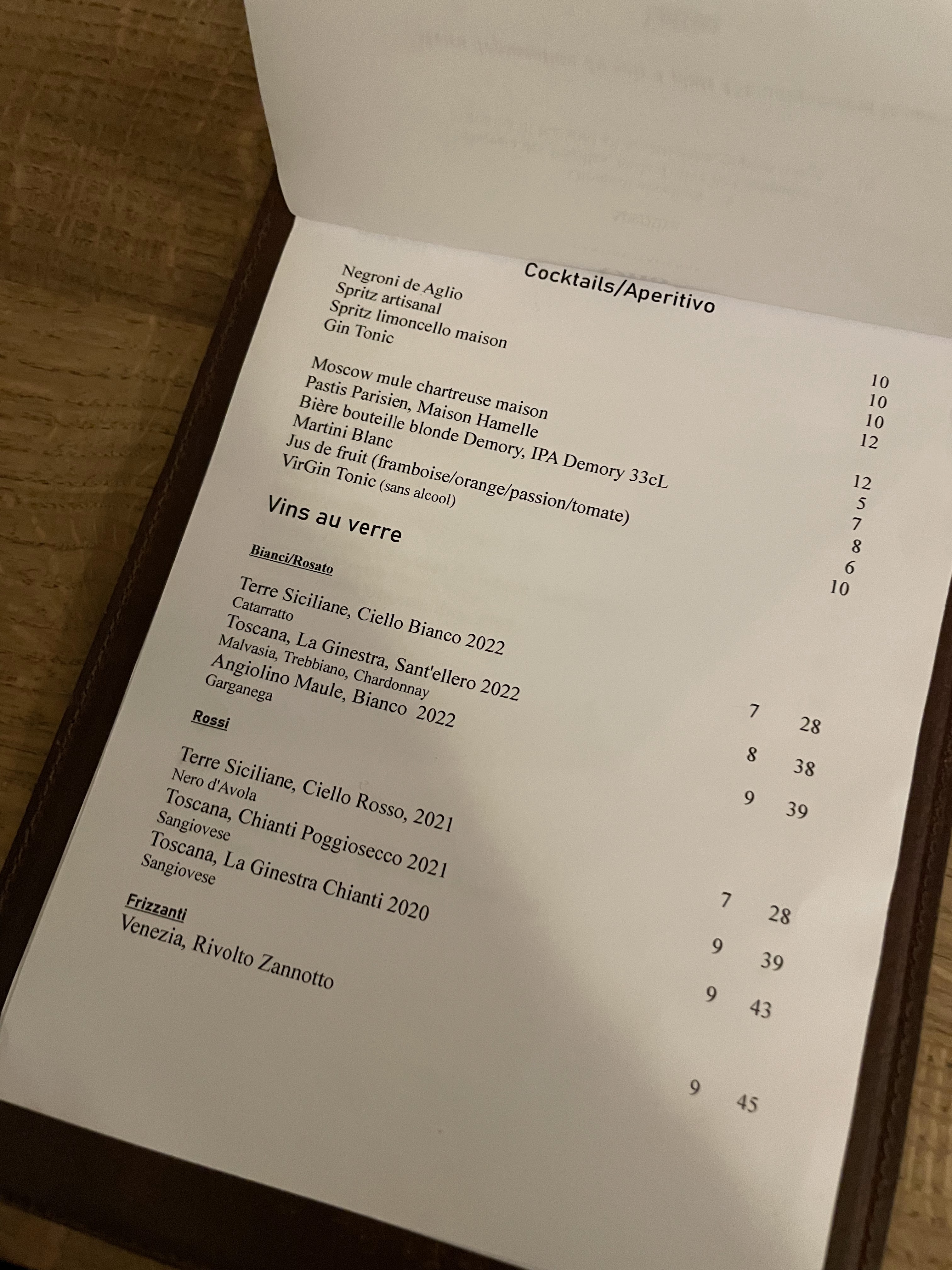 J'ai apprécié : - les pâtes - les plats globalement très bon - la suggestion de vin et de dernier très bien J'ai moins aimé : - le canollo revisité en dessert : on est un peu trop loin du canollo pour moi Cadre sympa, prix un peu élevé je trouve - mais je suis toujours assez surpris du prix des pâtes dans certains resto