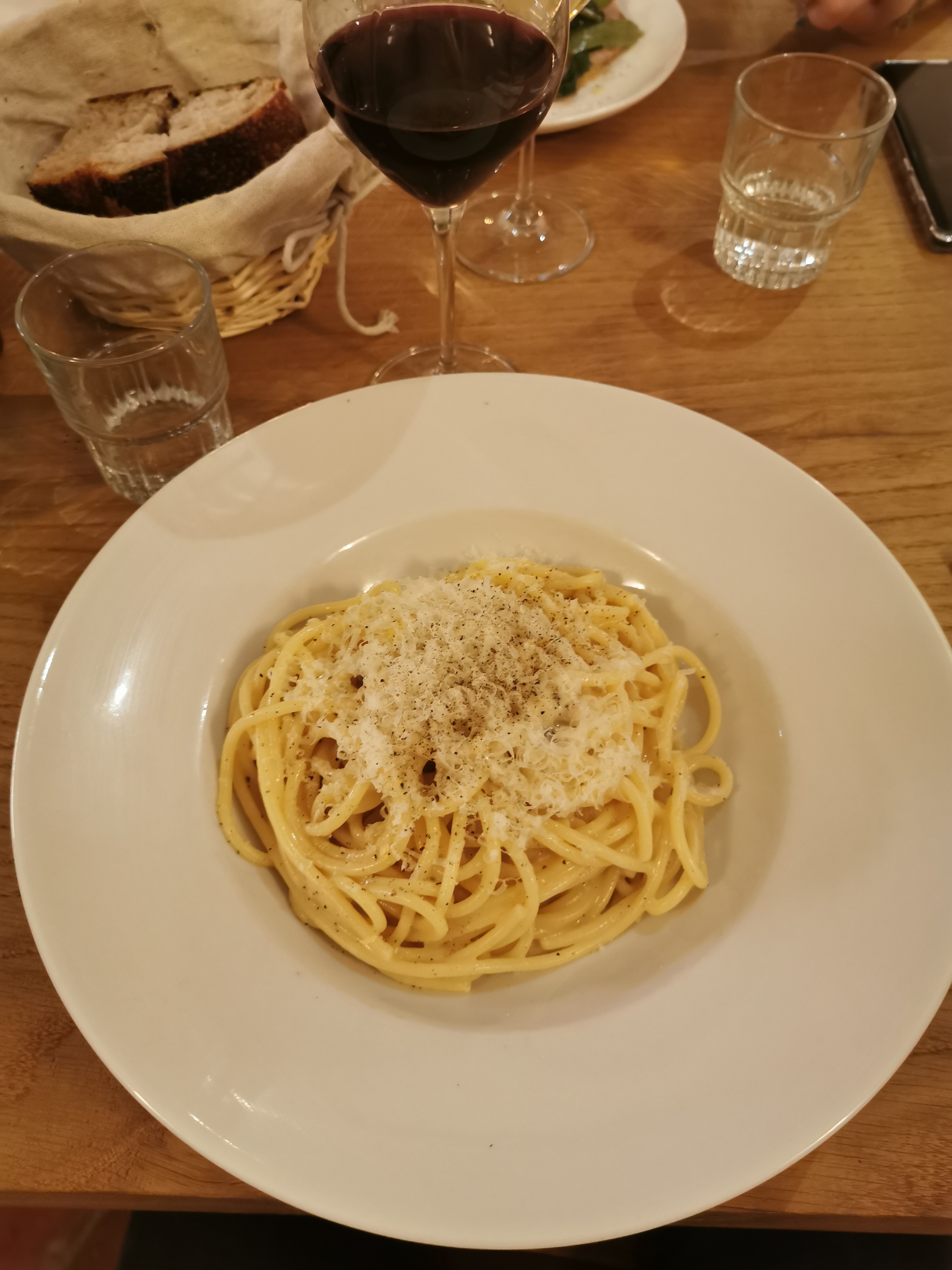 Service sympathique mais la poutargue sur la burrata manquait de goût, les caccio e Pepe manquait de crémeux (et non pas de crème car il n’y en a pas) dommage!