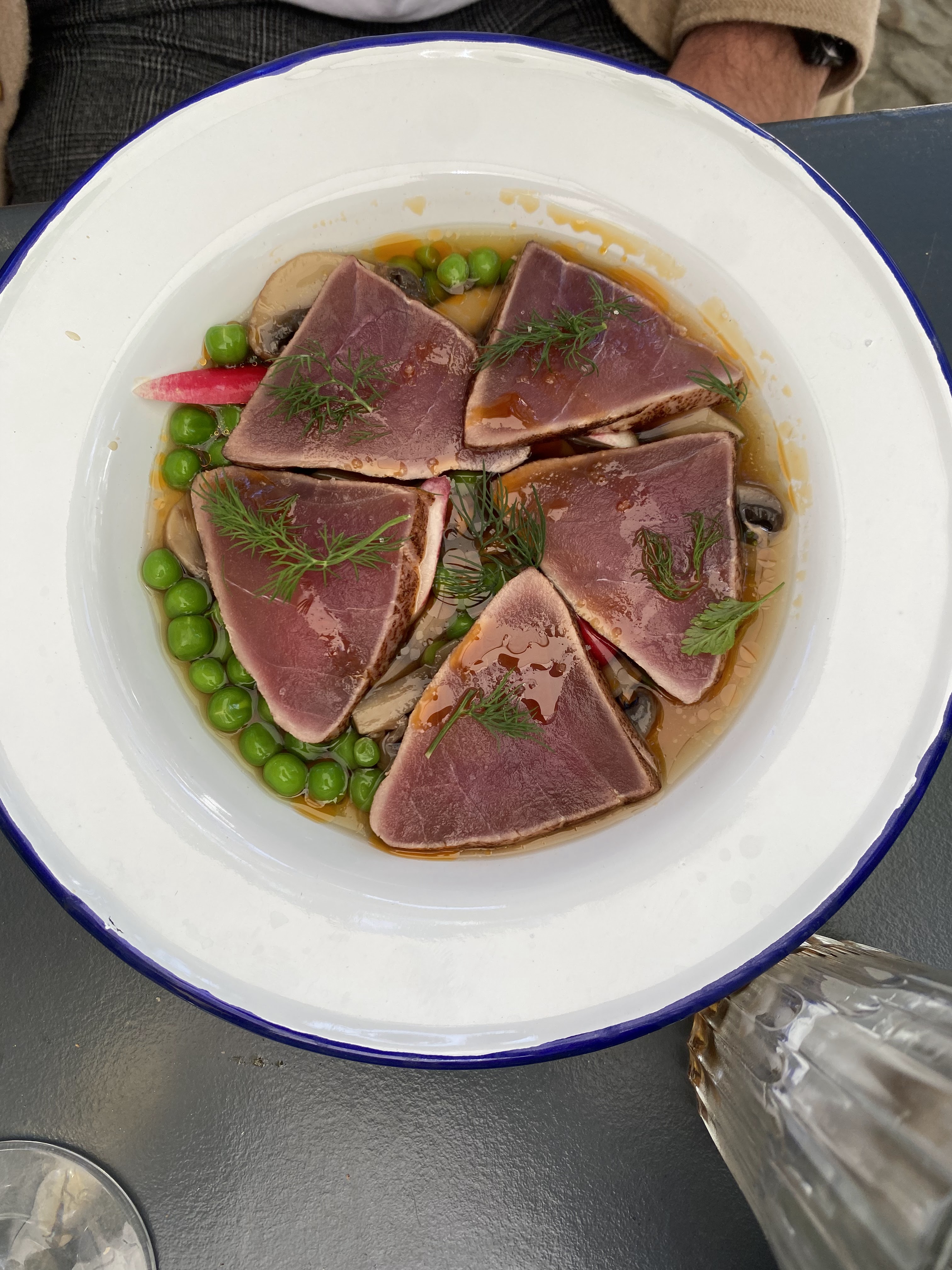 Adorable restaurant. Niché dans une petite place. Produits frais cuisinés avec simplicité mais tout de même élaborés. Les détails de la vaisselles un plus.