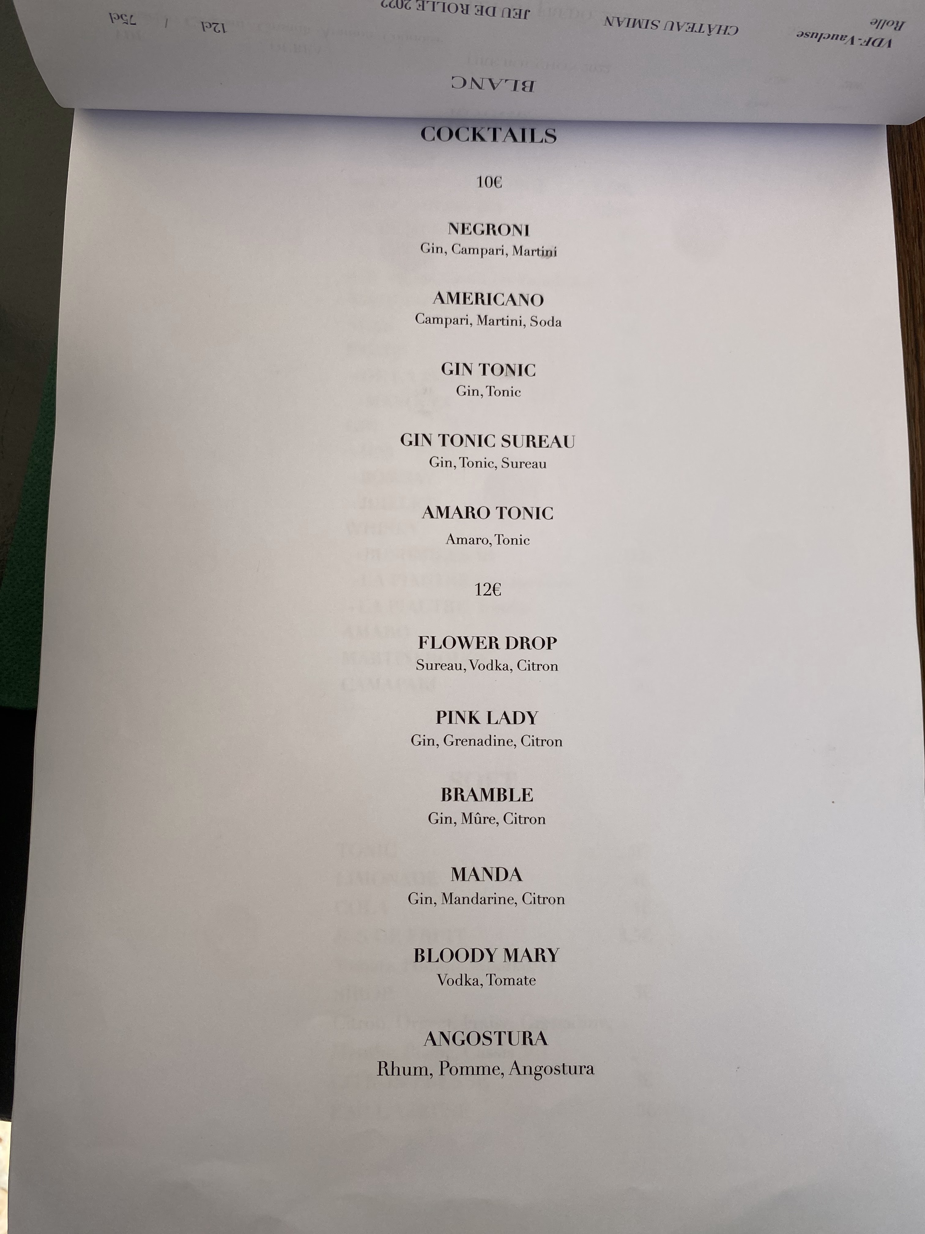 Dînette un seul plat du jour relativement copieux sans légumes hormis des pommes de terre à 25 €et des petits plats de 9 à 12€ dont on vous dit qu’ils sont insuffisants pour un repas et qu’il faut en prendre deuxBref une véritable arnaque avec un vin bio du même gabarit à fuir
