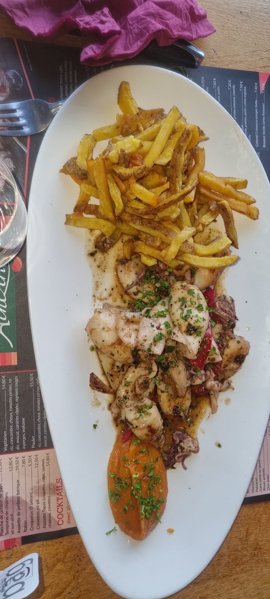 Service super sympa. Carte longue comme le bras de produits du pays. Prix tout doux. Je recommande les chipirons à la plancha.