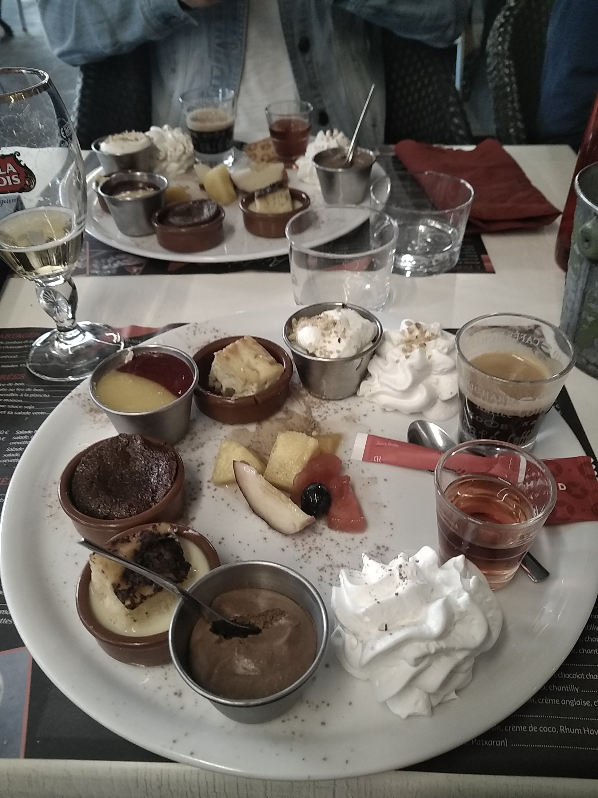 Partis à l'aventure on se demandait où on allait manger et on tombe par hasard sur un petit lac avec un seul restaurant ouvert sous la pluie basque. Le restaurant est plein, c'est bon signe. Et ce qu'on mange le confirme. La carte est large et les plats du jour au nombre de trois. Je choisis les Saint Jacques et j'en ai 5 énormes avec quatre accompagnements délicieux. La sauce n'était peut-être pas obligatoire mais je la sauce quand même. Et le café gourmand est accompagné de... 12 gâteries. Restaurant à fréquenter après l'effort.
