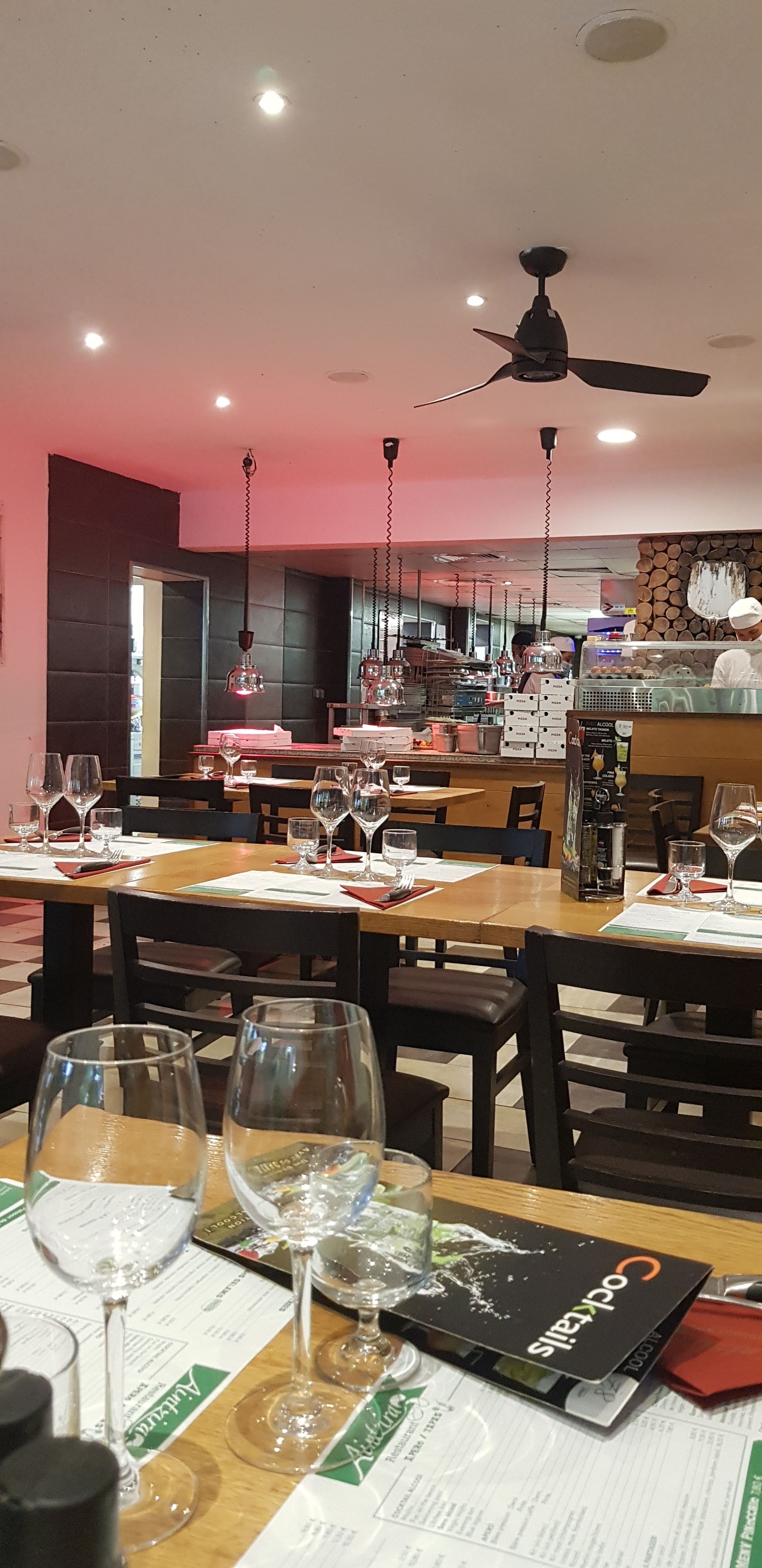 Nous sommes venus mercredi 21 tout était parfait sauf le seul cocktail que je voulais il y en avait plus, pizzas excellentes et serveurs (es)agréables et souriants. Nous retournons ce soir avec des amis ,le cocktail que je commande il y en a pas, les pizzas manquent de cuisson, café gourmand moyen ma crêpes froide et sèche je la refuse on me dit que la crêpes est pas sèche je refuse et bien sûr ne la règle pas. Mauvaise expérience ce soir en présence de nos amis.