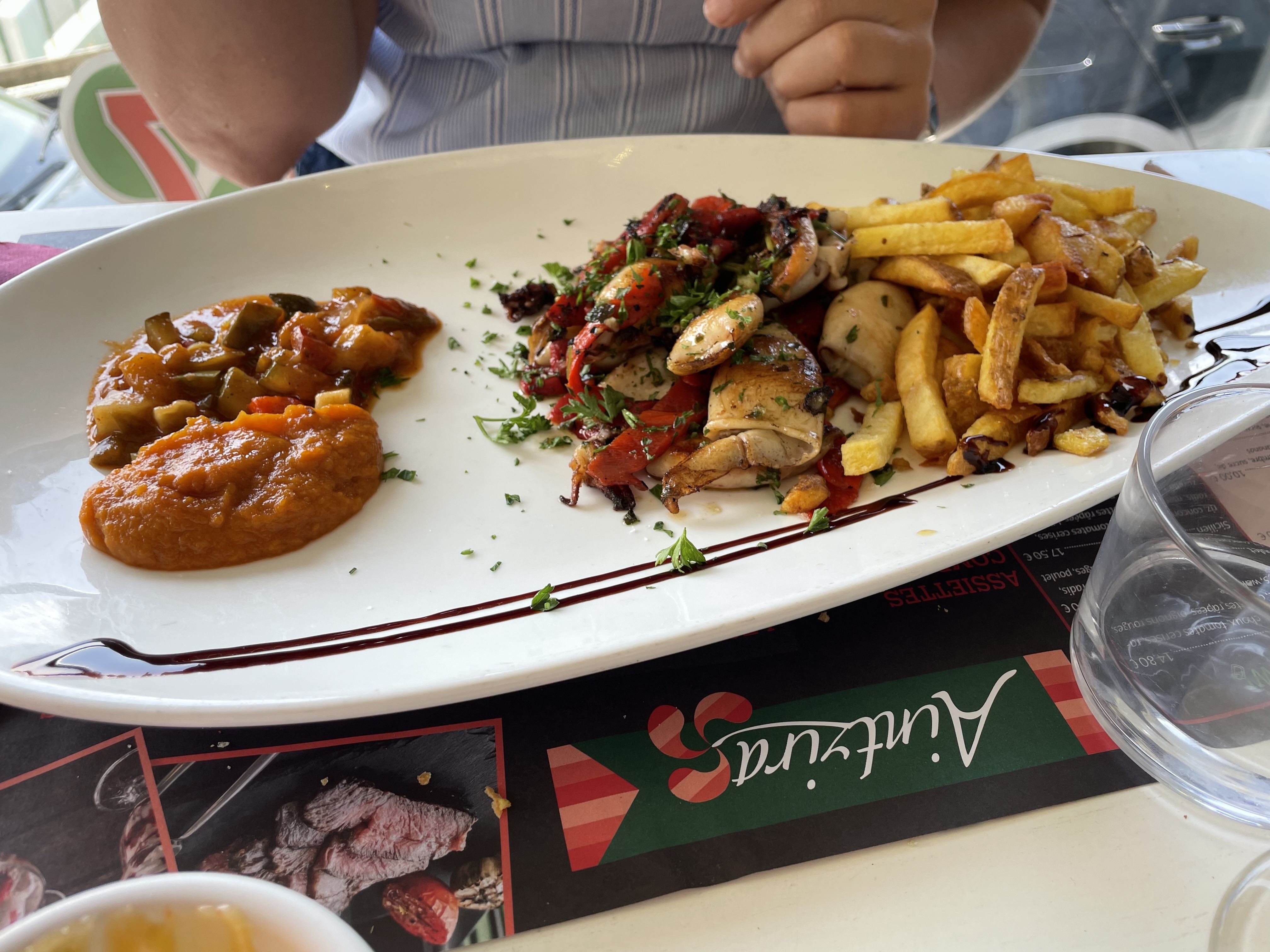 Petite balade au Pays Basque le temps d'un week-end, mon compagnon connaissant déjà ce restaurant, m'y a invitée pour mon anniversaire et j'en ai été ravie! Nous sommes accueillis avec le sourire et un personnel aussi agréable que gentil ou aux petits soins. Nous avons copieusement dîné et nous nous nous sommes régalés. On reviendra plusieurs fois cet été pour nos vacances c'est sûr! Merci pour votre accueil chaleureux et de régaler nos papilles!