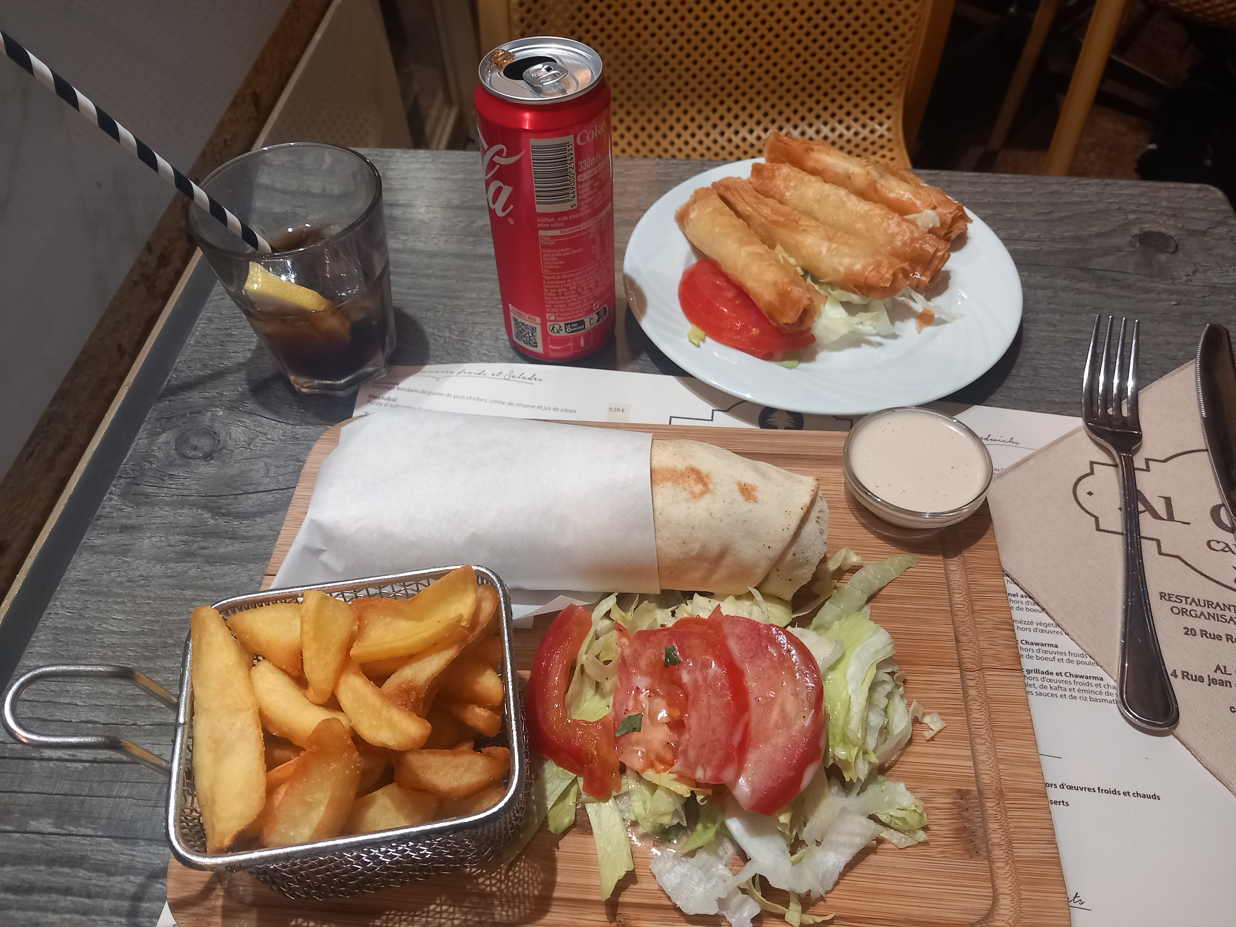 Un ensemble un peu cher mais qui reste de qualité dans les saveurs et les quantités. Je recommande néanmoins en passant si vous voulez manger un petit Libanais qui ne vous décevra pas.