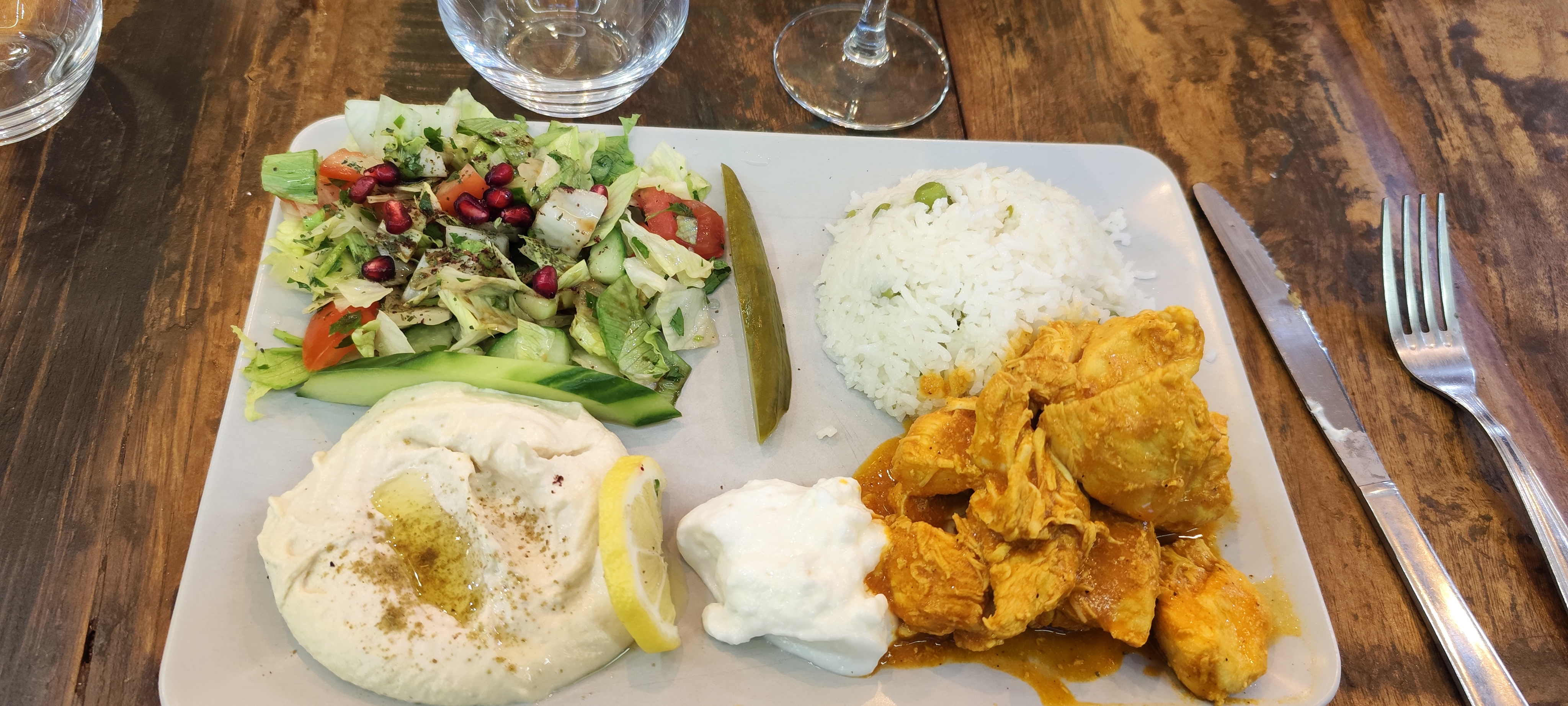 Adresse sympa pour le midi, mezze légers et possibles en végétarien, prix correct