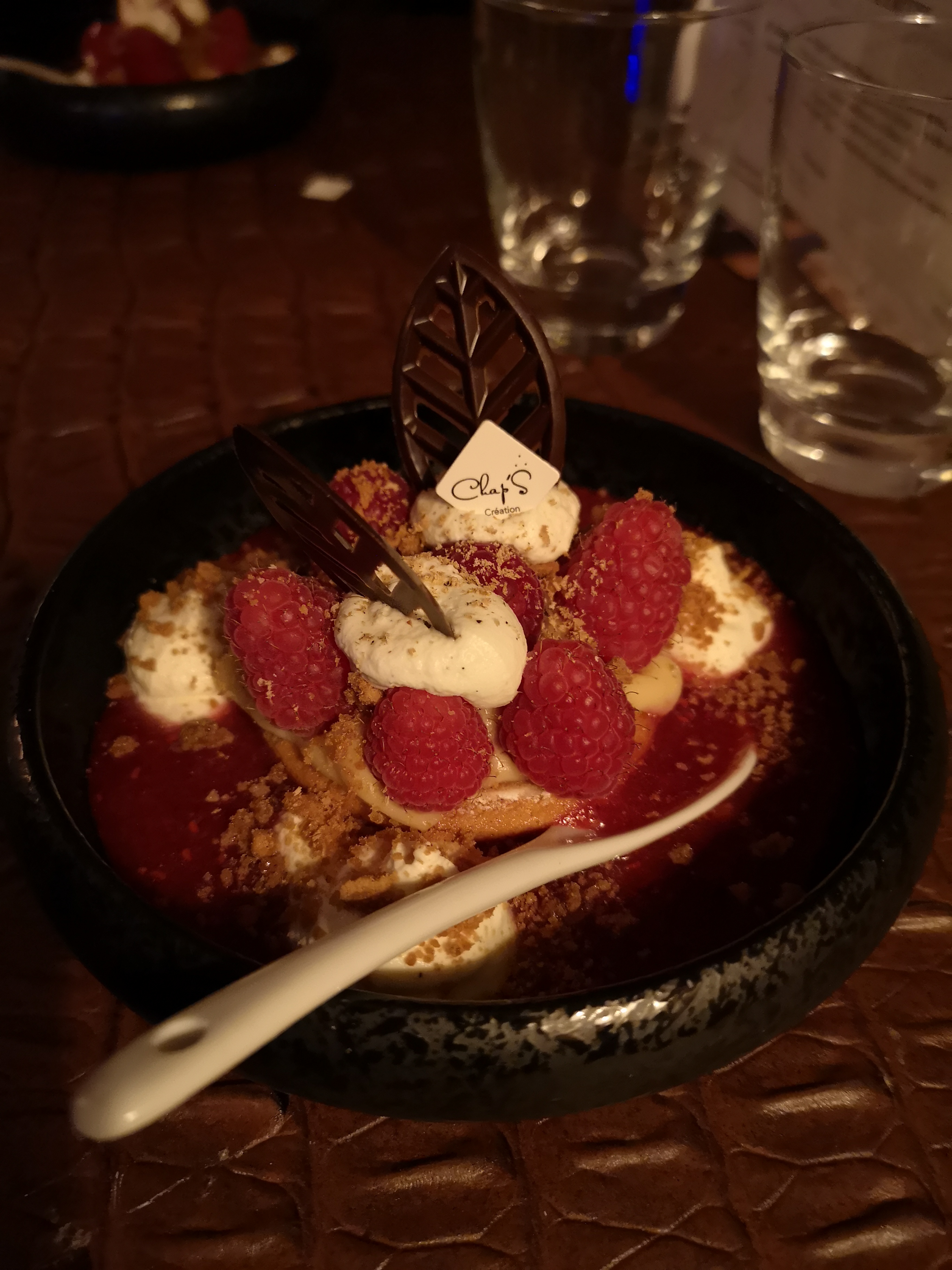On ne va pas chez Chap's par hasard. On s'y rend principalement pour l'alléchante carte qui nous est proposée et également pour vivre cette expérience peu commune, déguster de délicieux plats dans une salle richement décorée, plongée dans une semi-obscurité. Au chapitre des choses qui m'empêchent de mettre la note maximale, des plats un petit peu trop salés à mon goût, le pain délivré avec parcimonie (moi qui adore saucer) et la simple crème brûlée qui n'a pas sa place pour clore un tel repas.