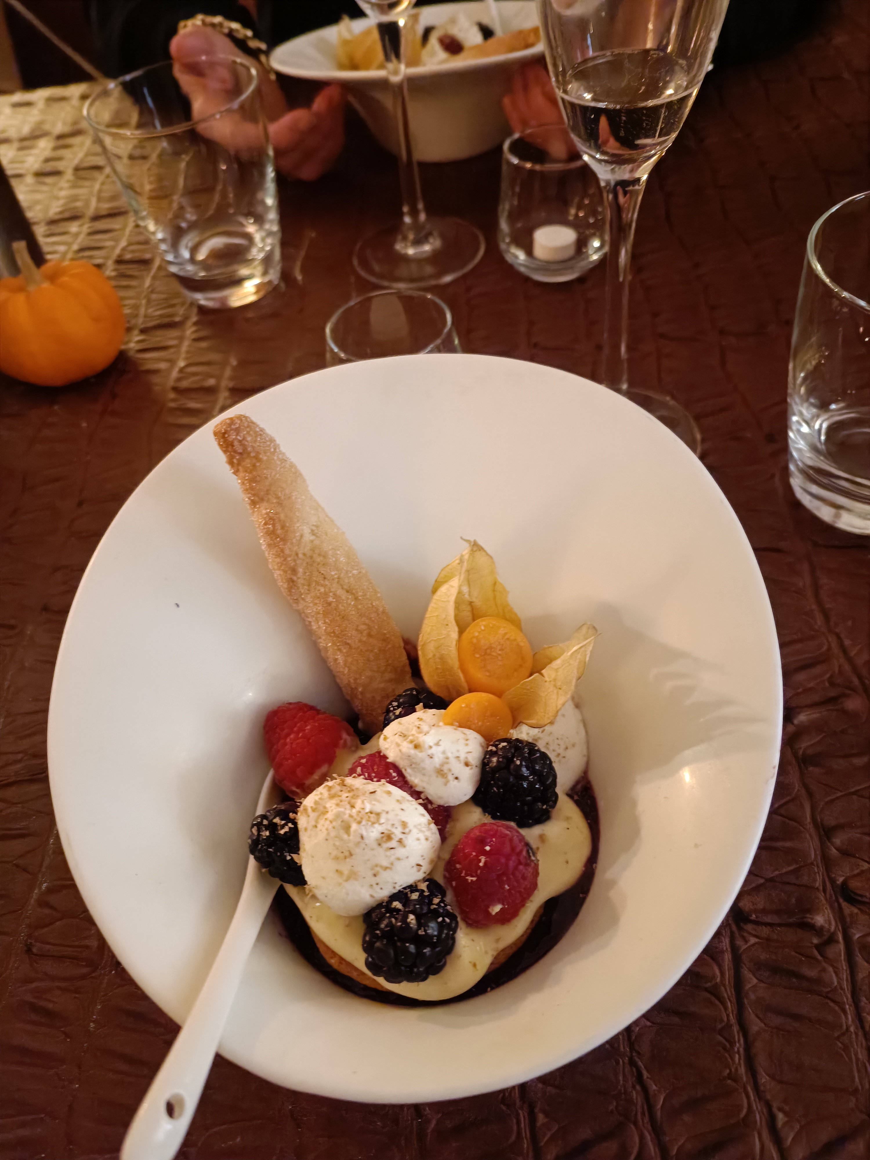 Le restaurant est chaleureux et l'ambiance romantique. Les plats sont bien élaborés et savoureux. Mais un peu déçu par la rapidité du service, on aimerait prendre plus de temps. Et les vins ne sont pas à la hauteur. Donc bien mais un peu cher.