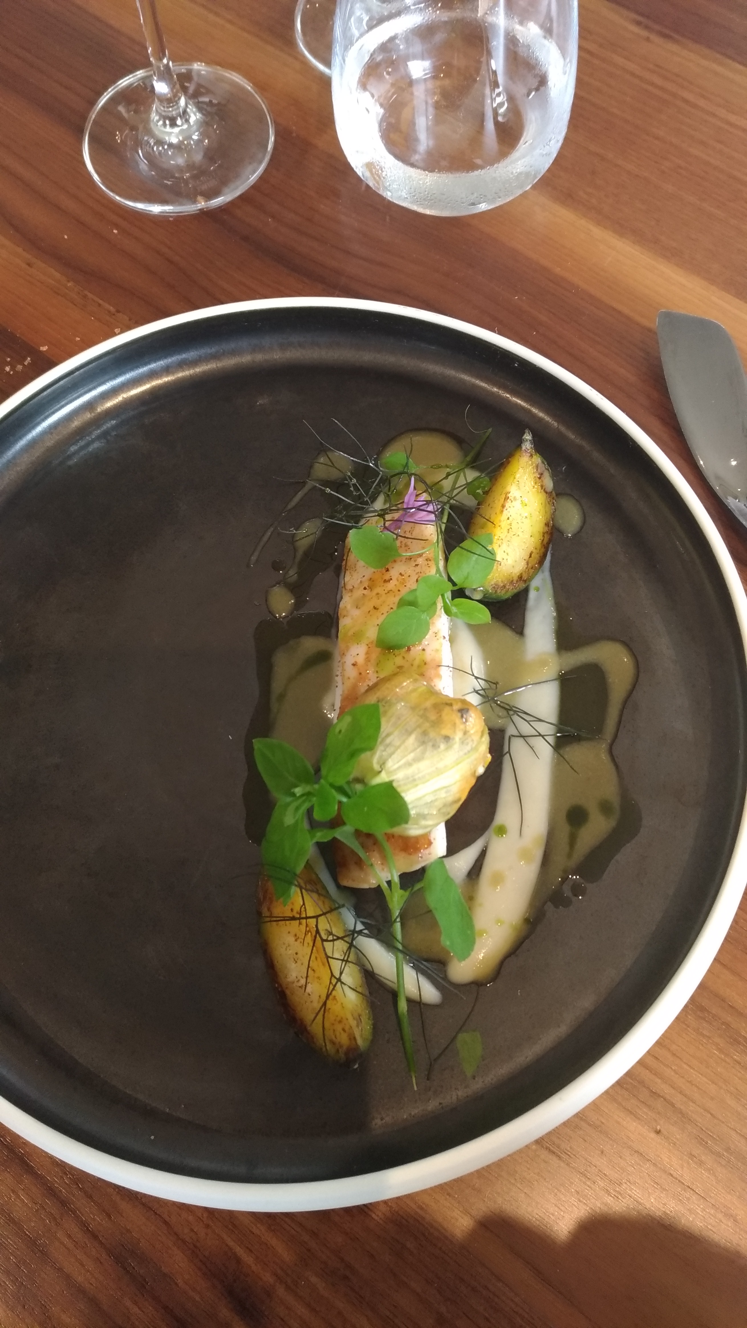 un restaurant chaleureux et mon HB et moi avons eu un très bon dîner avec technique de cuisine toucher au goût asiatique et à la présentation chic mais sans faire semblant. le vin a été recommandé par la patronne qui s'accorde parfaitement avec les fruits de mer. Je le recommande vivement.