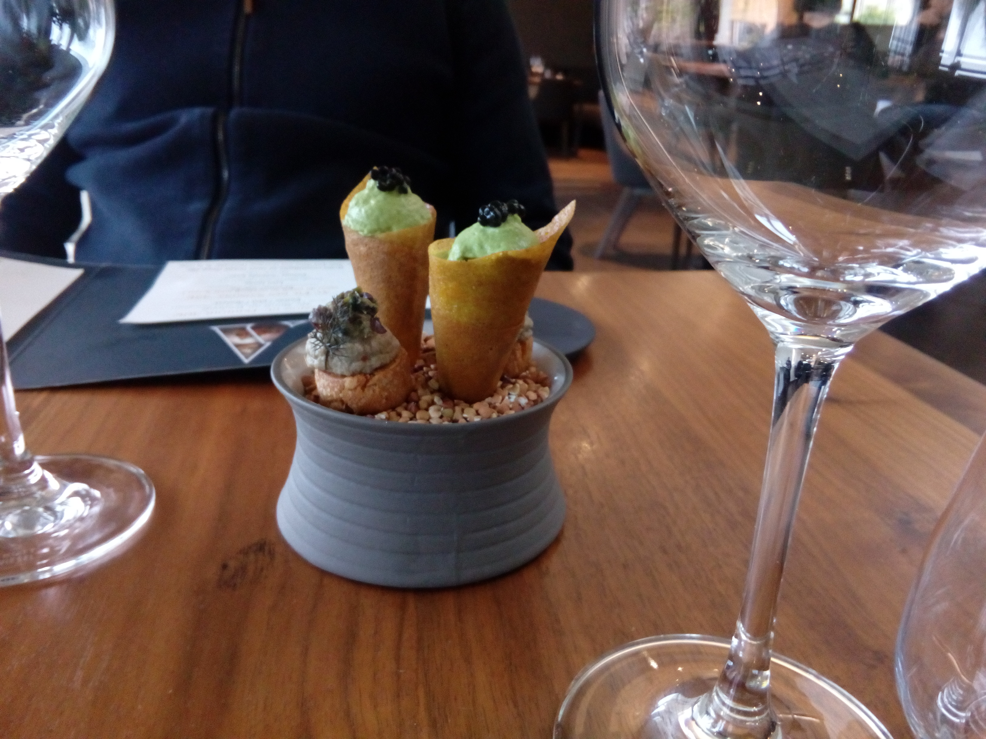 Tout est parfait dans les assiettes. En revanche le service n’est vraiment vraiment pas à la hauteur, et l’ambiance un peu plombante. Nous avons beaucoup apprécié le repas, mais nous n’y retournerons pas, car la soirée était longue (3h30 pour le menu à 90€…) et nous n’y sommes pas sentis à l’aise