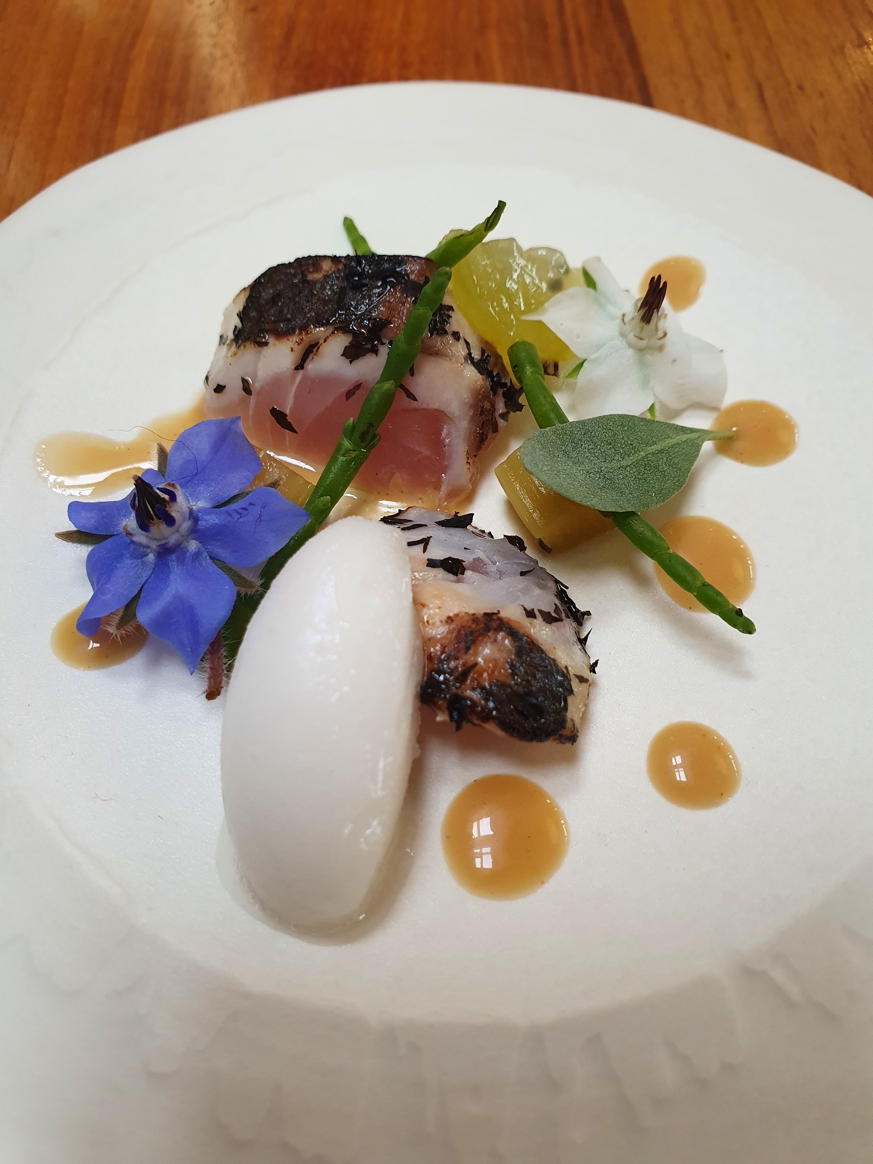 Dès la 1 ère bouchée apéritive, immense plaisir des yeux et des papilles , qui va durer tout au long du repas qu’on prend le temps à chaque plat de savourer, d’essayer de définir les produits, les saveurs subtiles et d’admirer la présentation. Quel talent en cuisine et un service très professionnel et chaleureux. Vivement la prochaine fois .